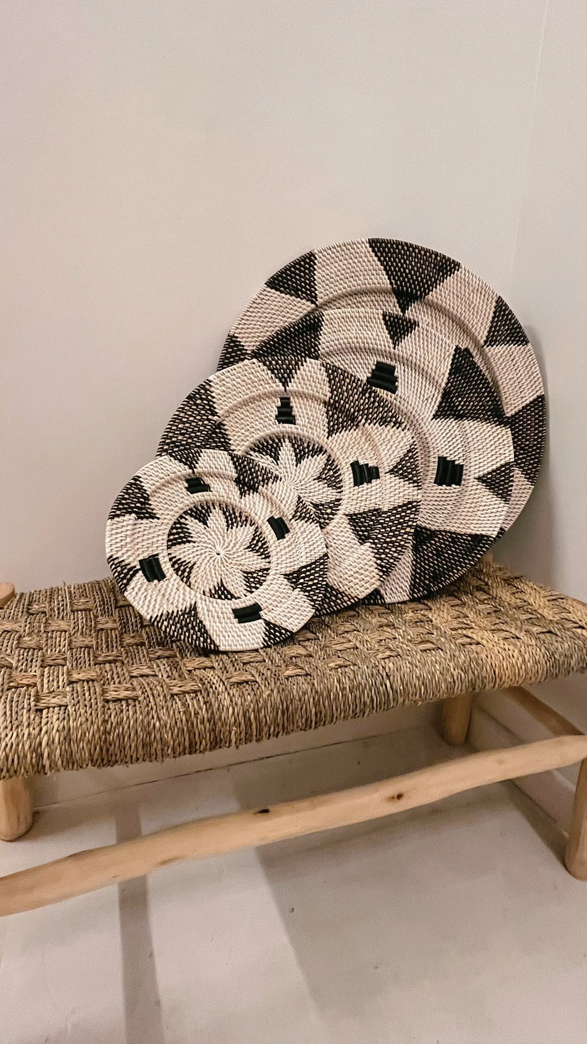 Entdecken Sie die handwerkliche Schönheit und die rustikale Eleganz mit unserem charmanten Wandteller aus Rattan. ein Unikat, das Ihrer Wanddekoration einen Hauch von Eleganz verleihen wird.