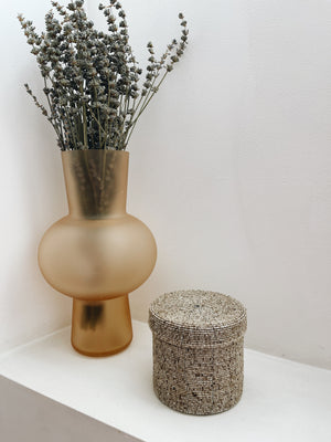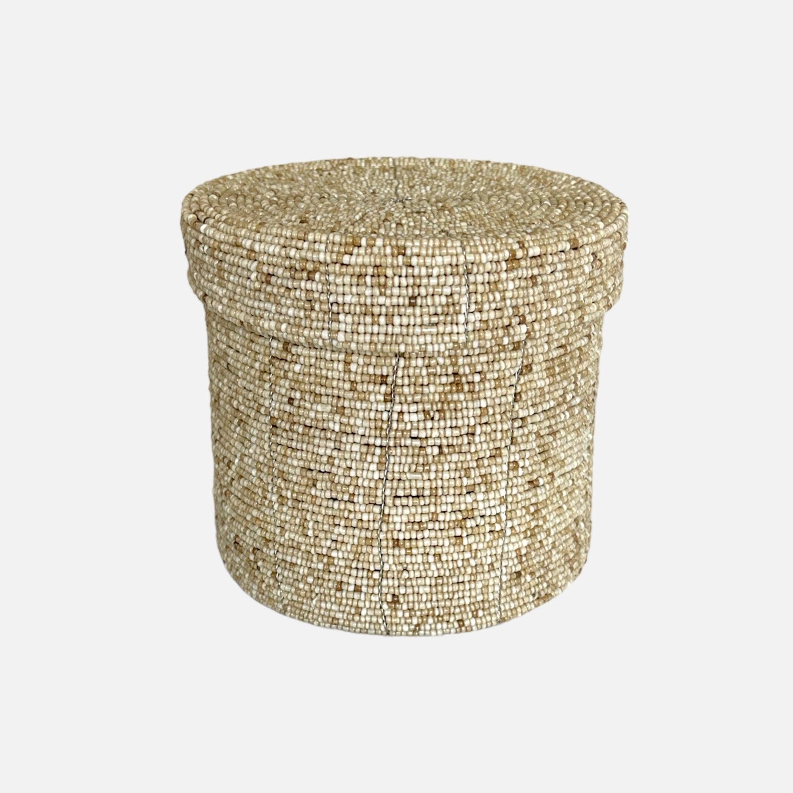 Add a touch of boho chic style to your decor with our handmade Melasti round box, adorned with beads in shades of beige.