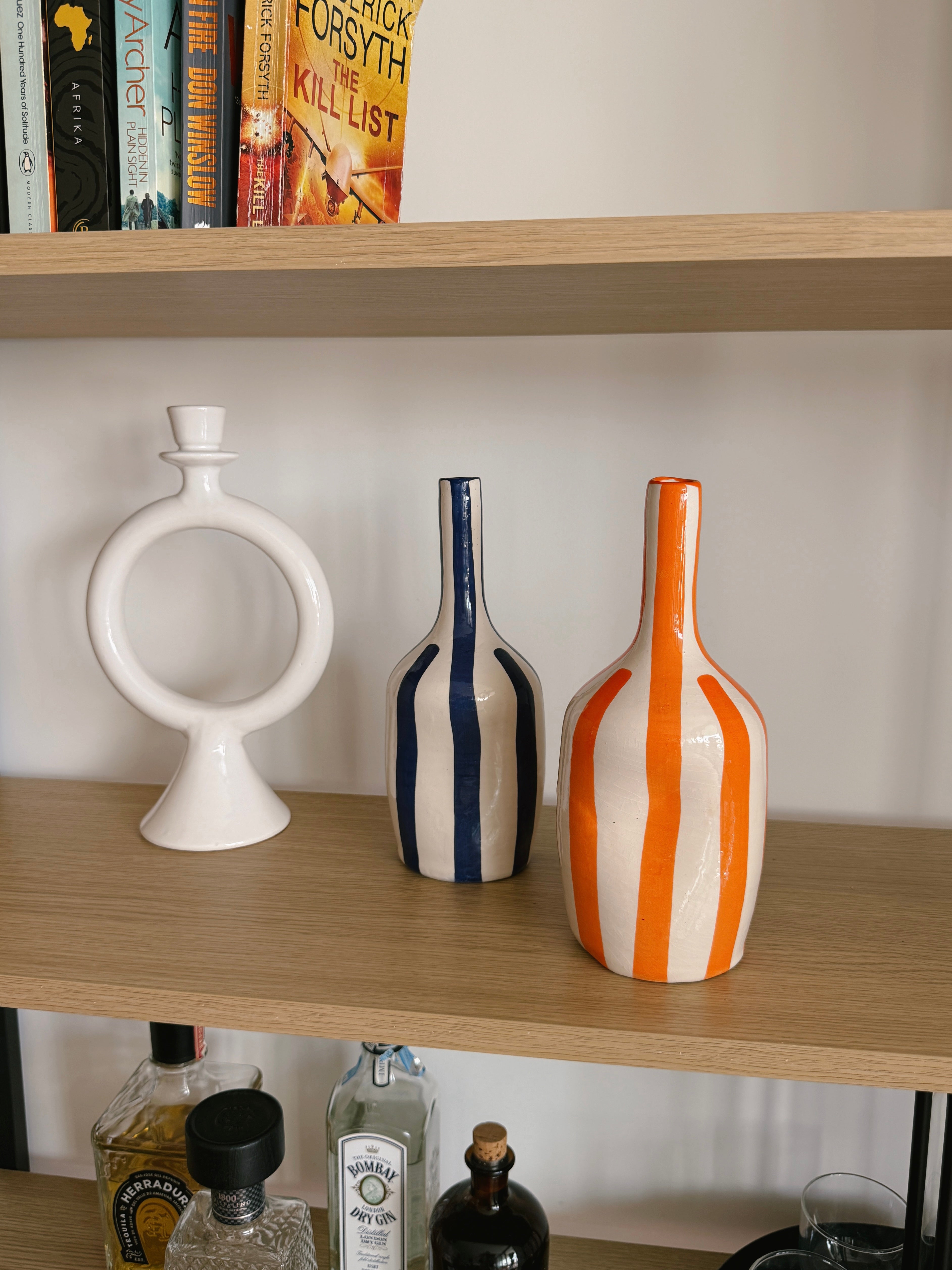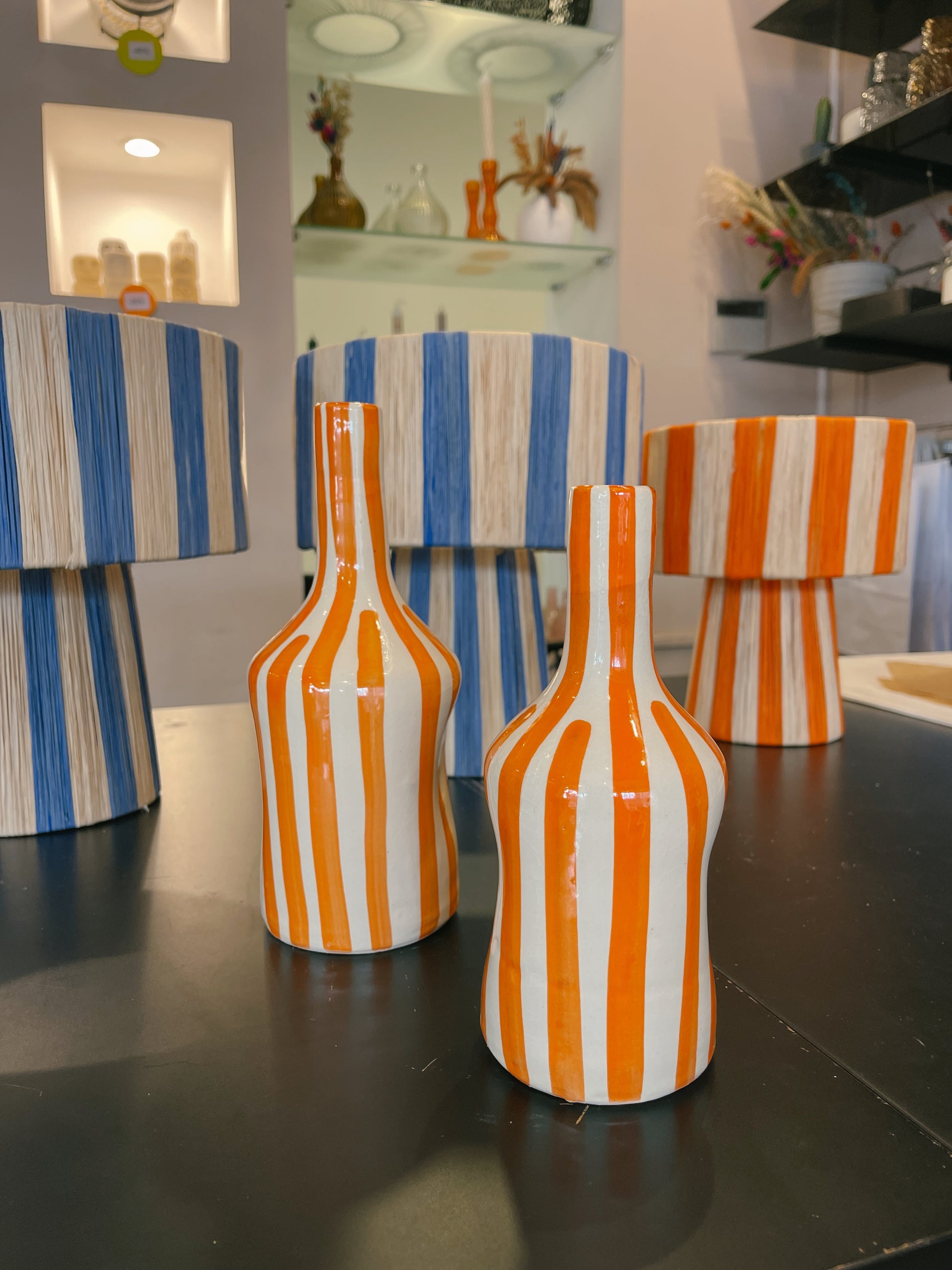 Add elegance and personality to your space with our handmade ceramic decorative vase with stripes. Each piece is carefully crafted by talented artisans, combining traditional techniques with a modern and sophisticated design.