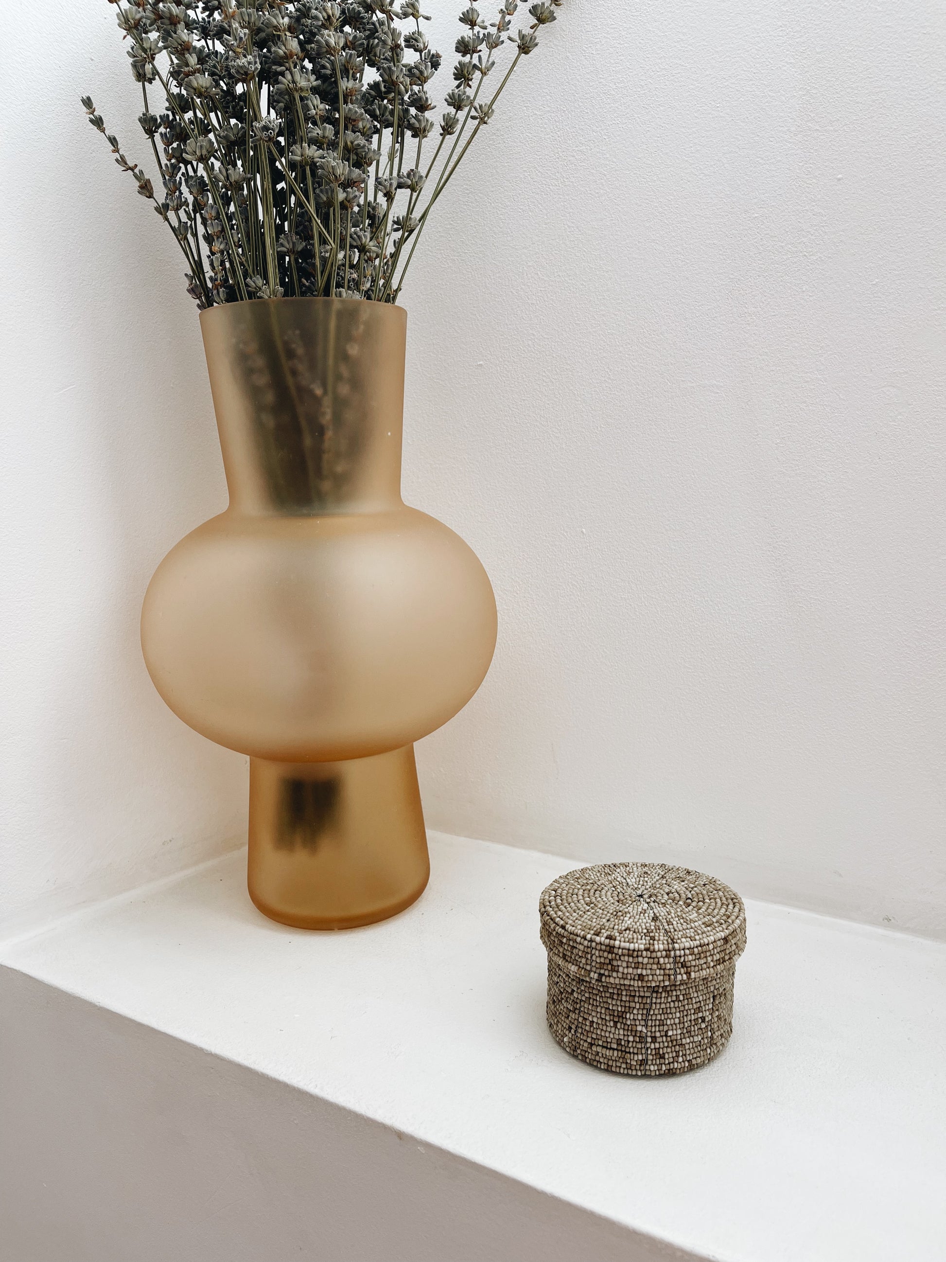 Add a touch of boho chic style to your decor with our handmade Melasti round box, adorned with beads in shades of beige.