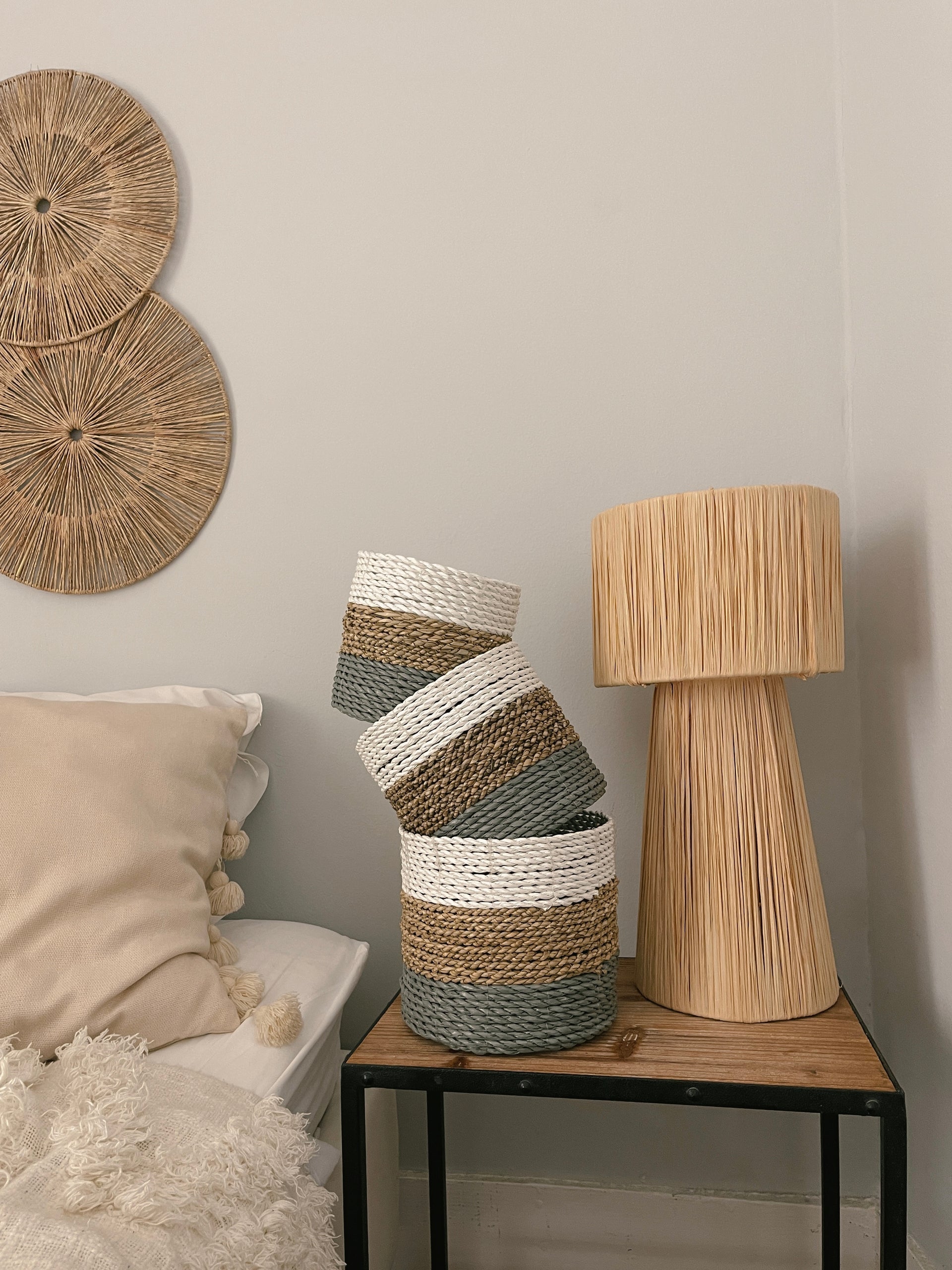 • Handmade natural rattan lampshades. Perfect for any living or dining room.