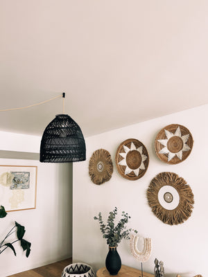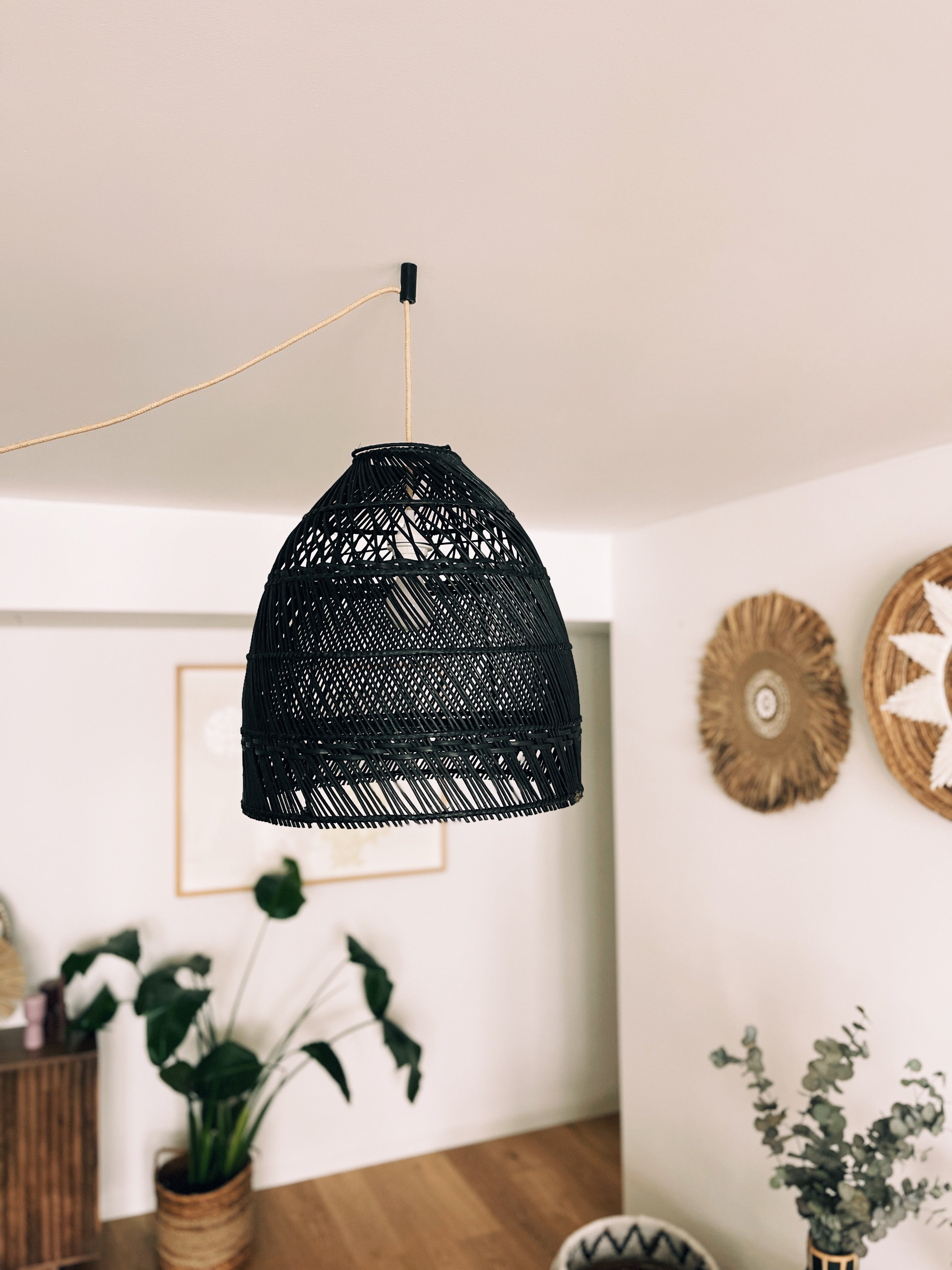 Nuestra imponente lámpara de ratán Lauhata es una lámpara que impresiona cualquier espacio. Con un diseño único y una estructura elaborada en ratán, el contraste del negro de esta lámpara la convierte en una pieza que se destaca por su elegancia y sofisticación.