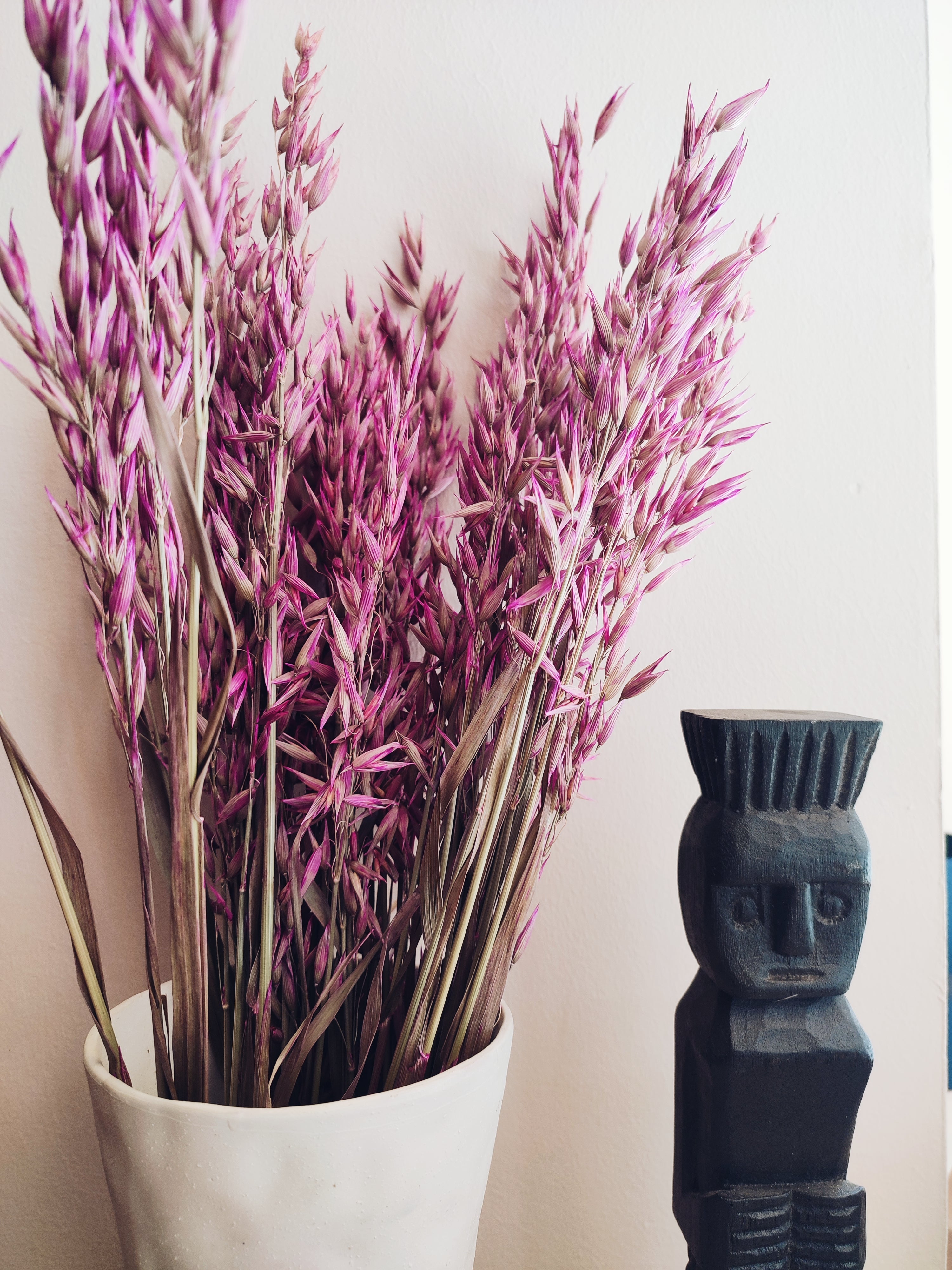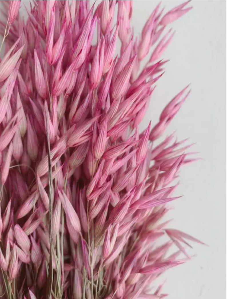 Ramo de espigas secas naturales y preservadas en tonos rosas, perfectas para añadir un toque de naturaleza a cualquier espacio.