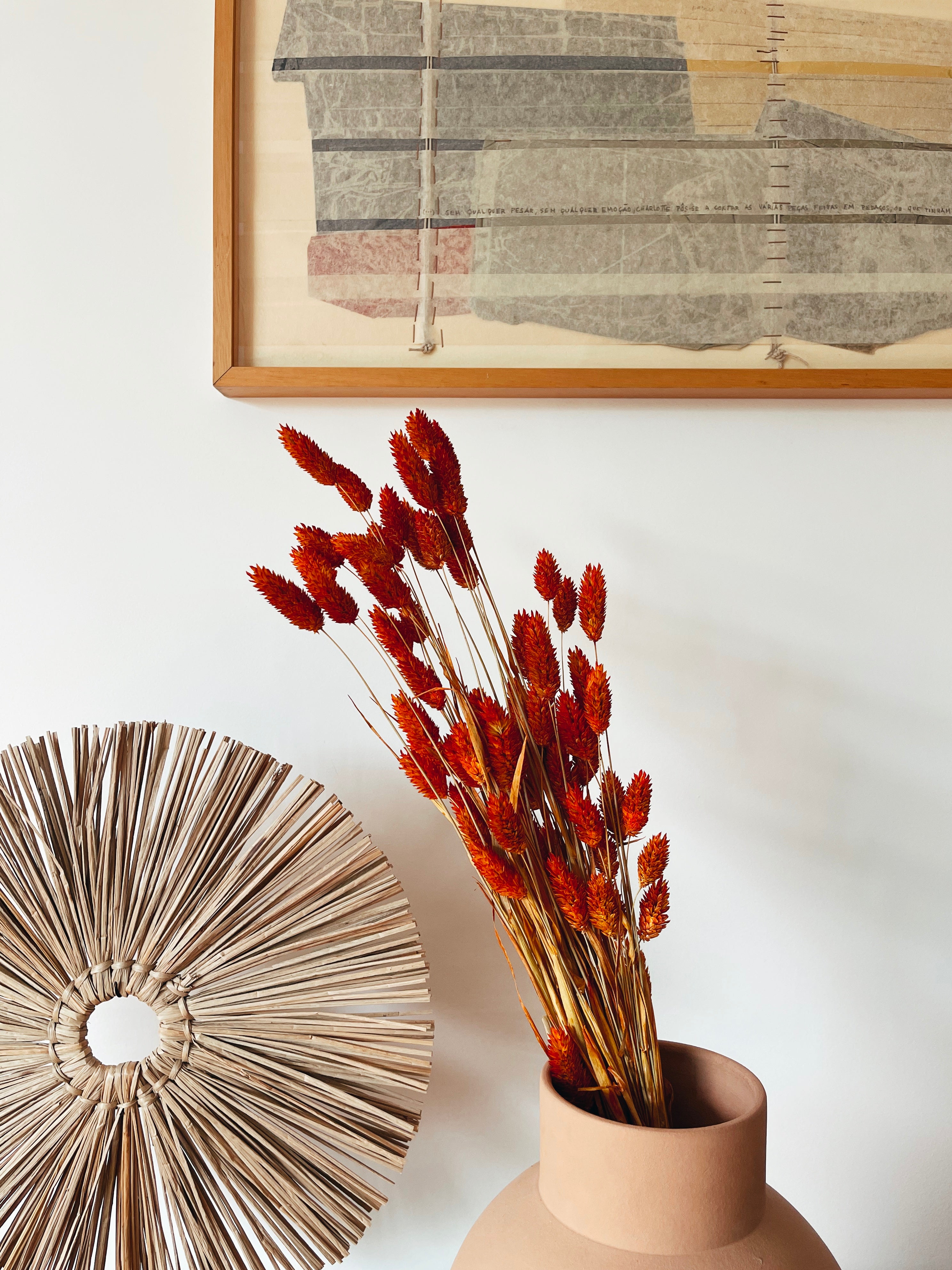 Ramo de flores secas naturales preservadas Phalaris, en tonos de color naranja, perfectas para añadir un toque de naturaleza a cualquier espacio.