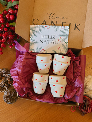 - Gobelets en céramique : peints à la main avec des rayures pleines de couleur. Tous uniques, tous différents !
