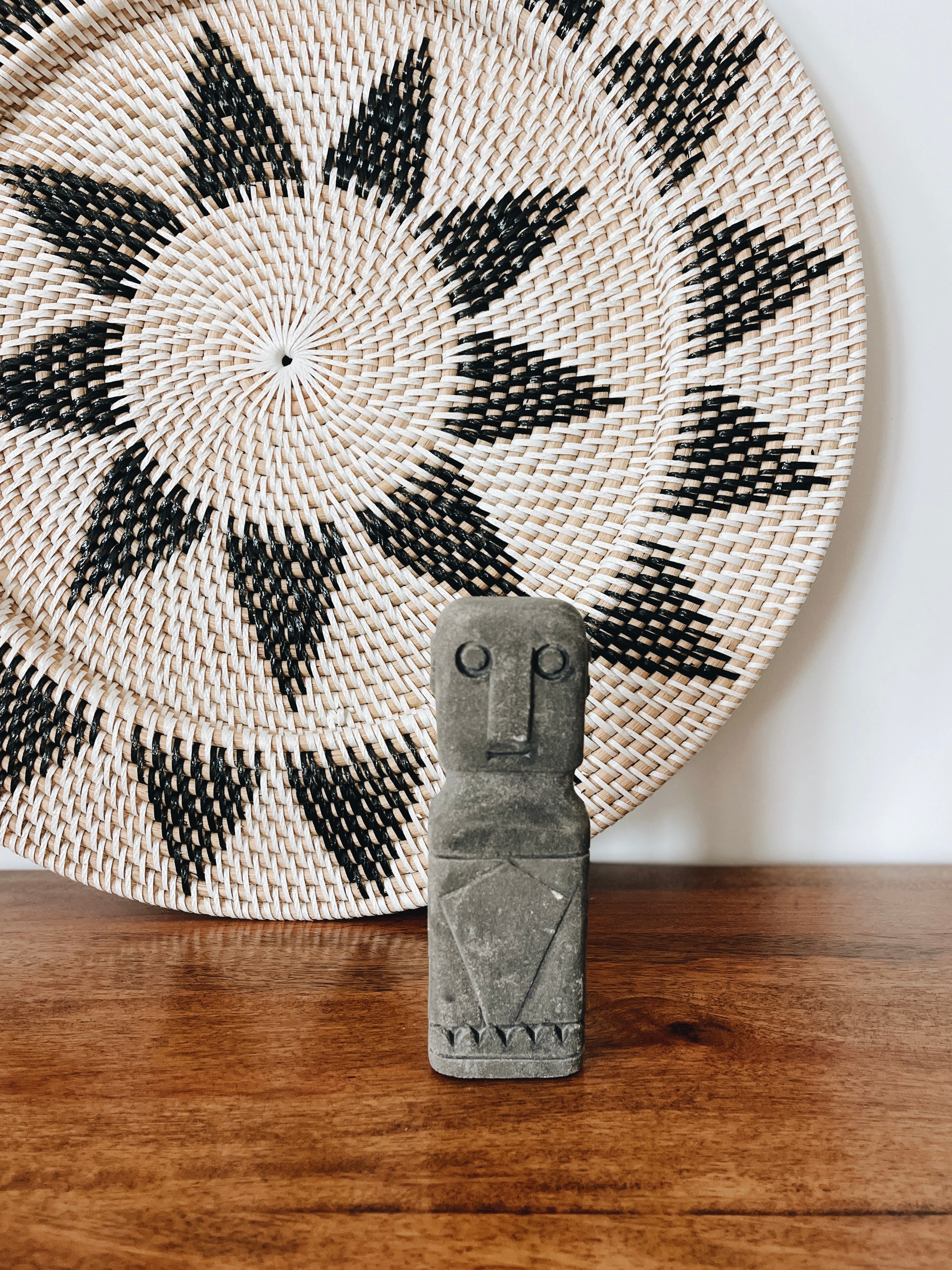 Ajoutez une touche de culture et d'authenticité à votre décoration avec notre petite statuette Maun Kik Lima faite à la main en pierre. Cette pièce impressionnante est sculptée avec soin par des artisans talentueux, capturant l'essence et la beauté des traditions tribales.