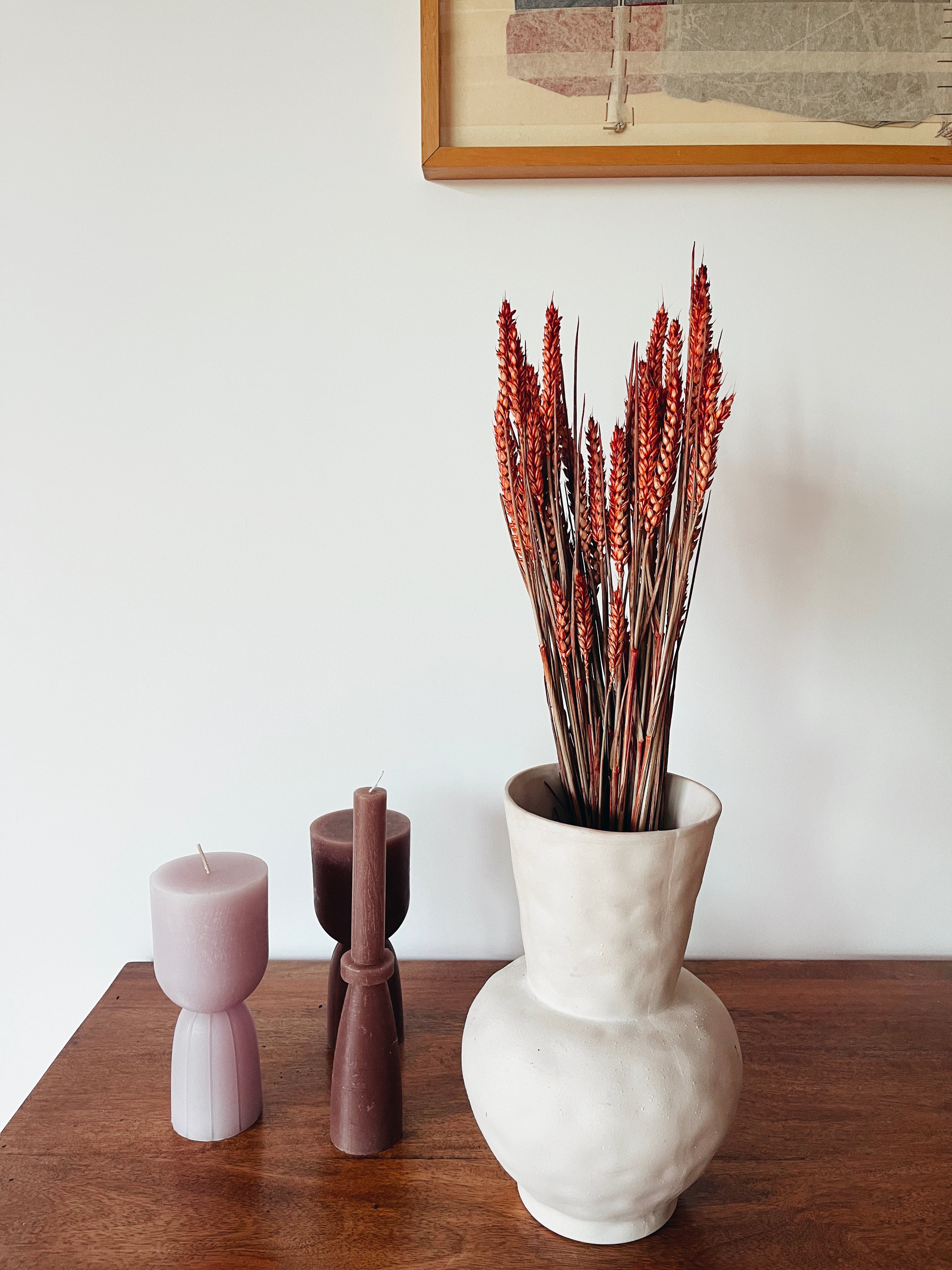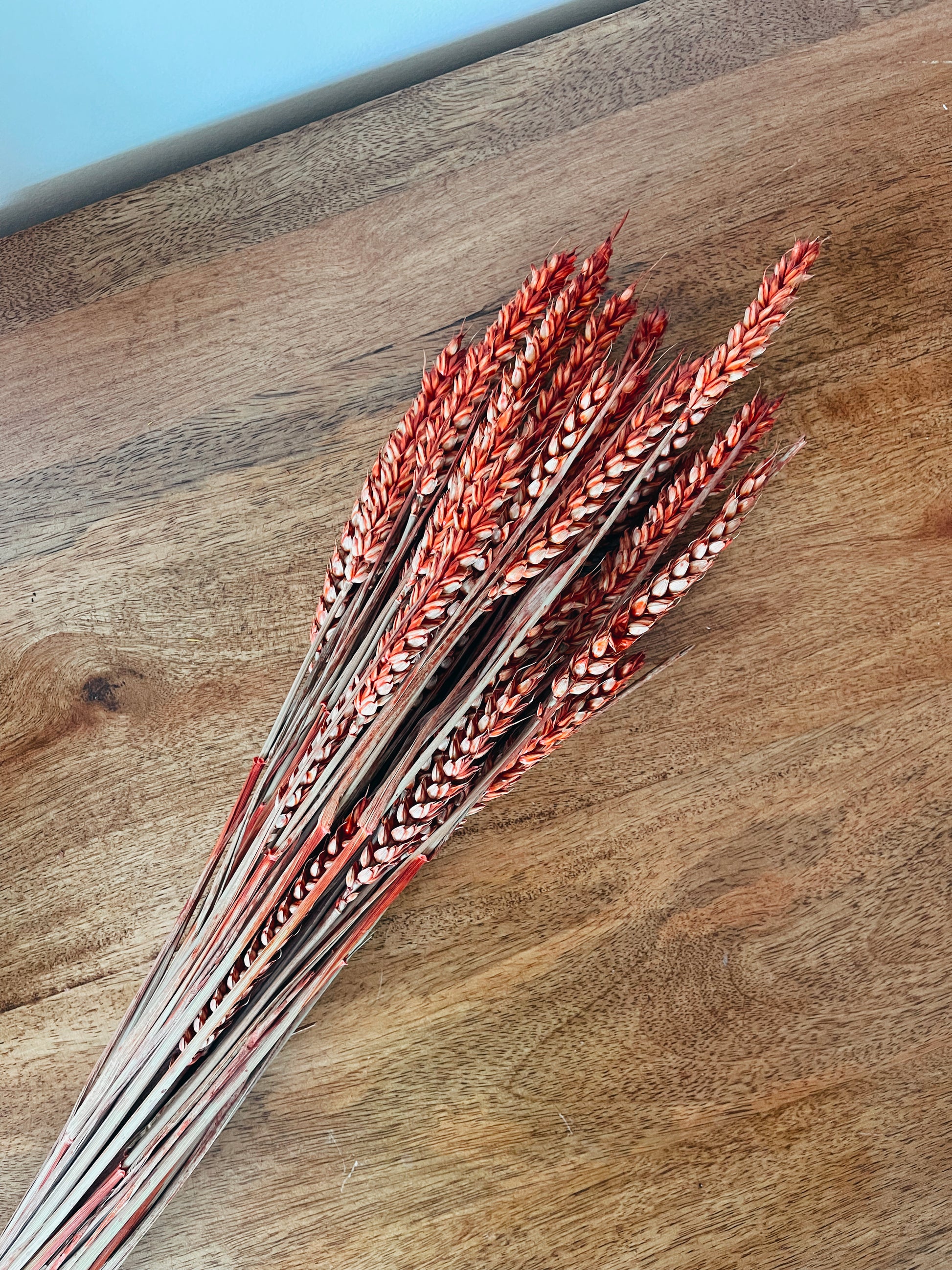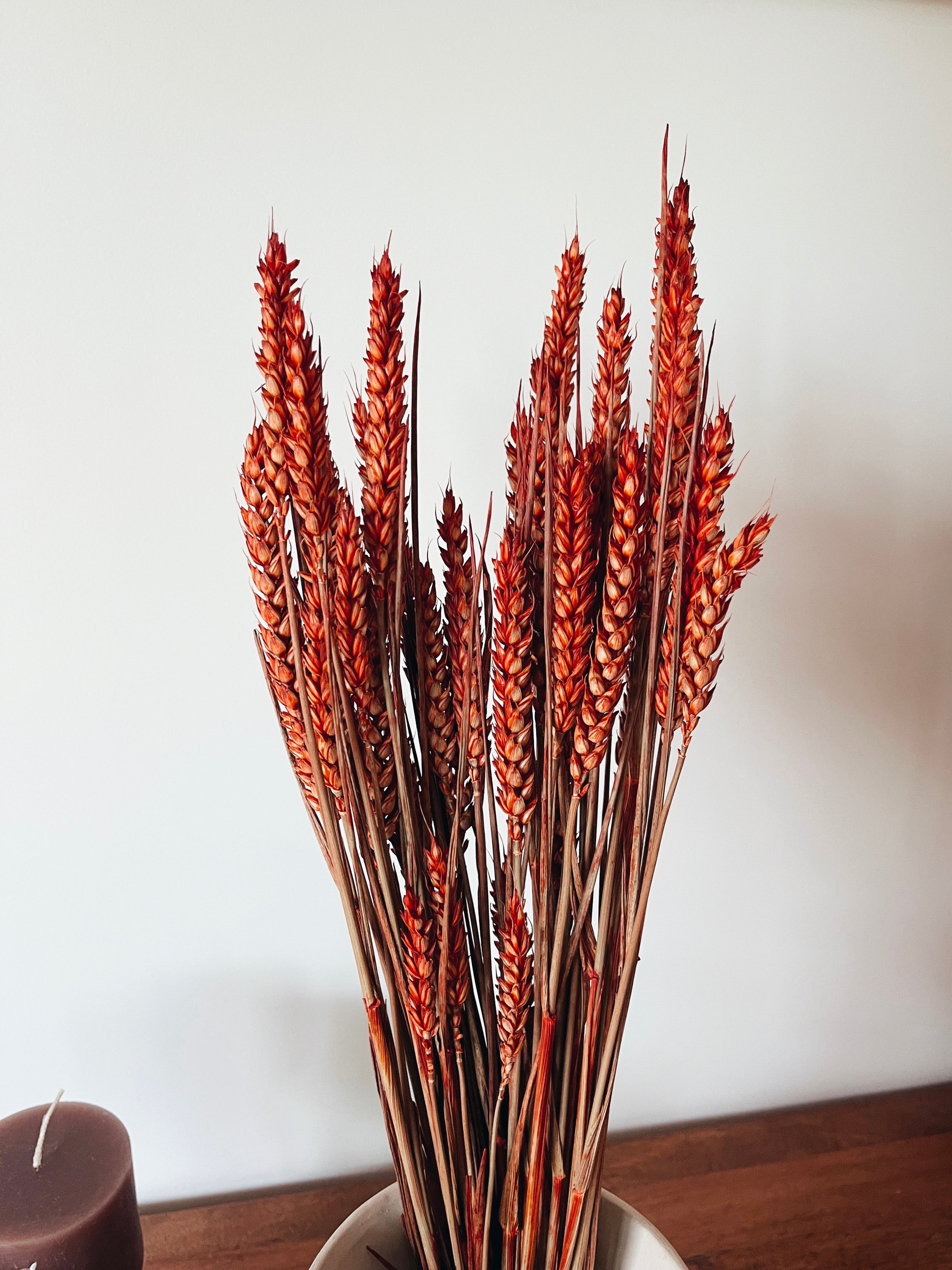 Brin de blé sec naturel préservé en tons rouges, parfait pour ajouter une touche de simplicité à n'importe quel espace.