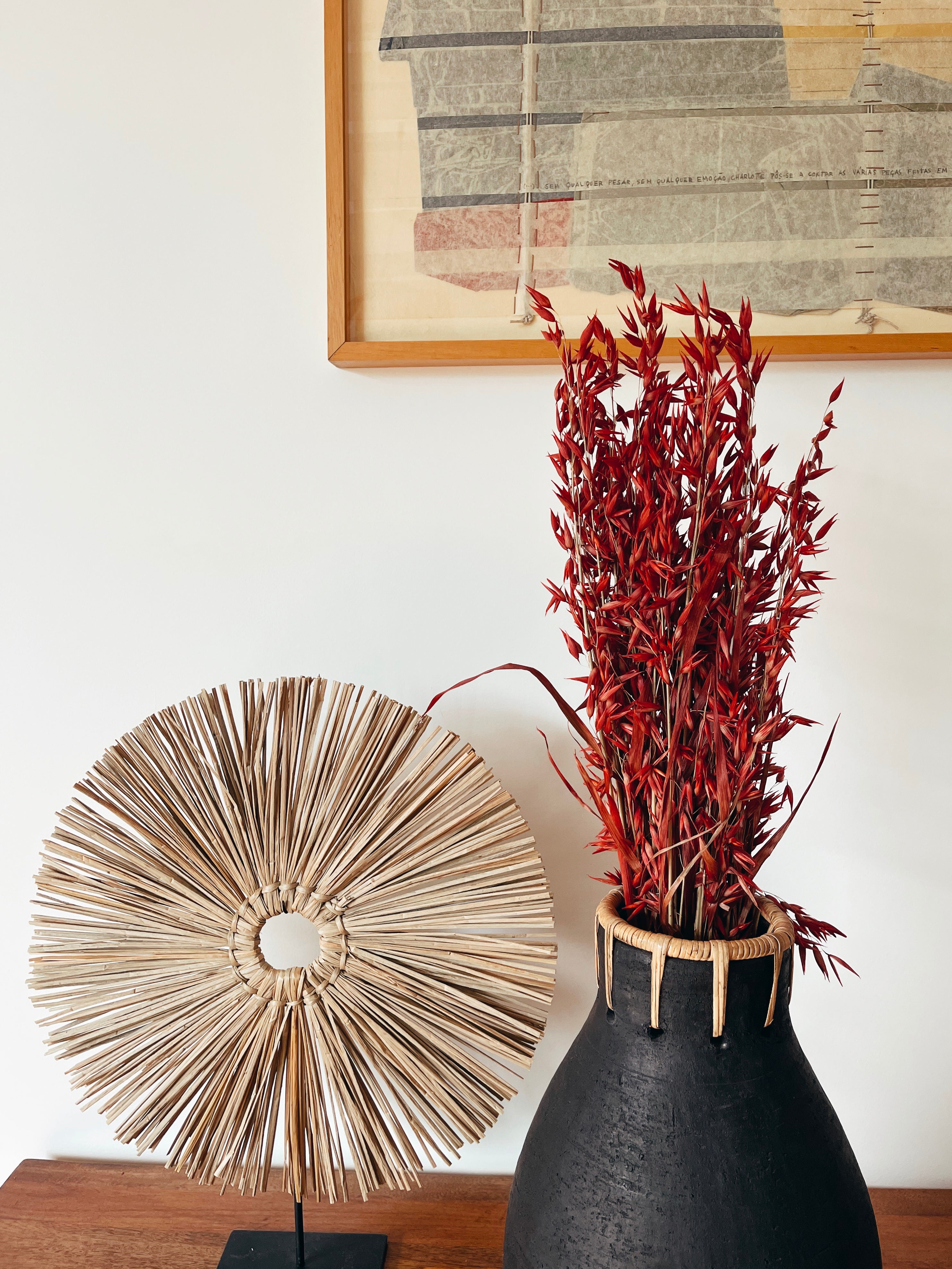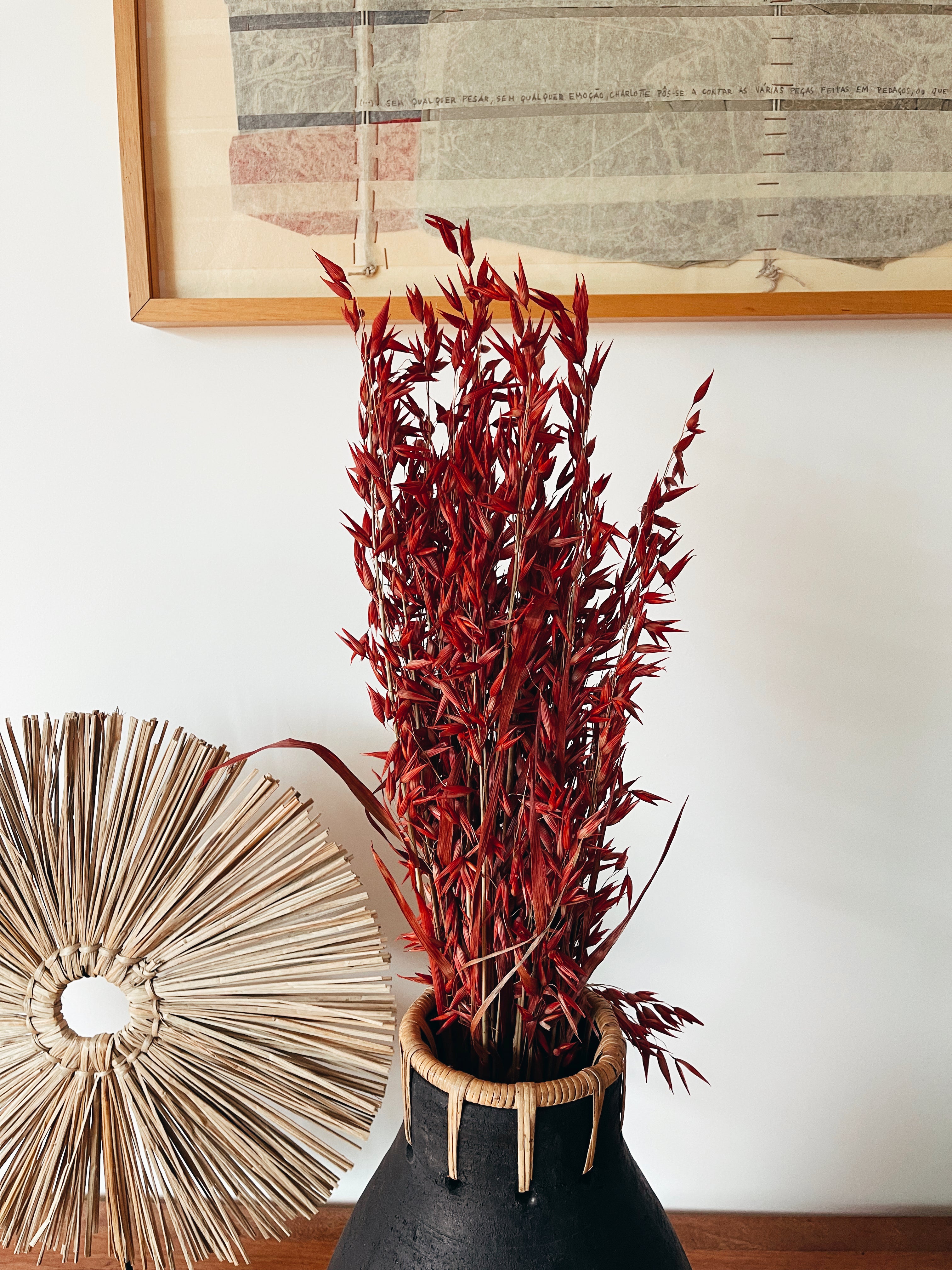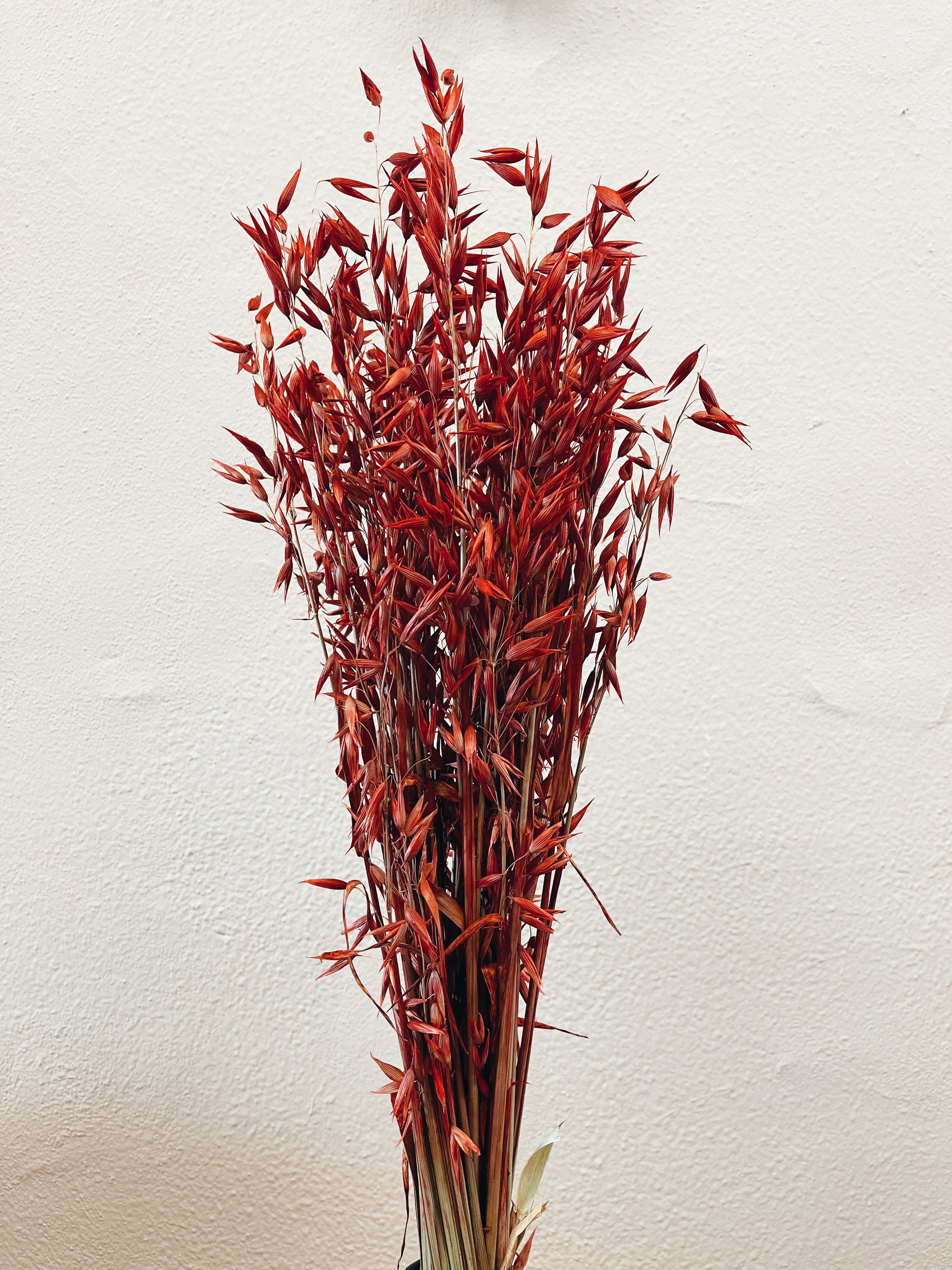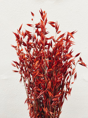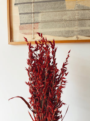 Mazzo di spighe essiccate naturali e conservate nei toni del rosso, perfette per aggiungere un tocco di natura a qualsiasi spazio.