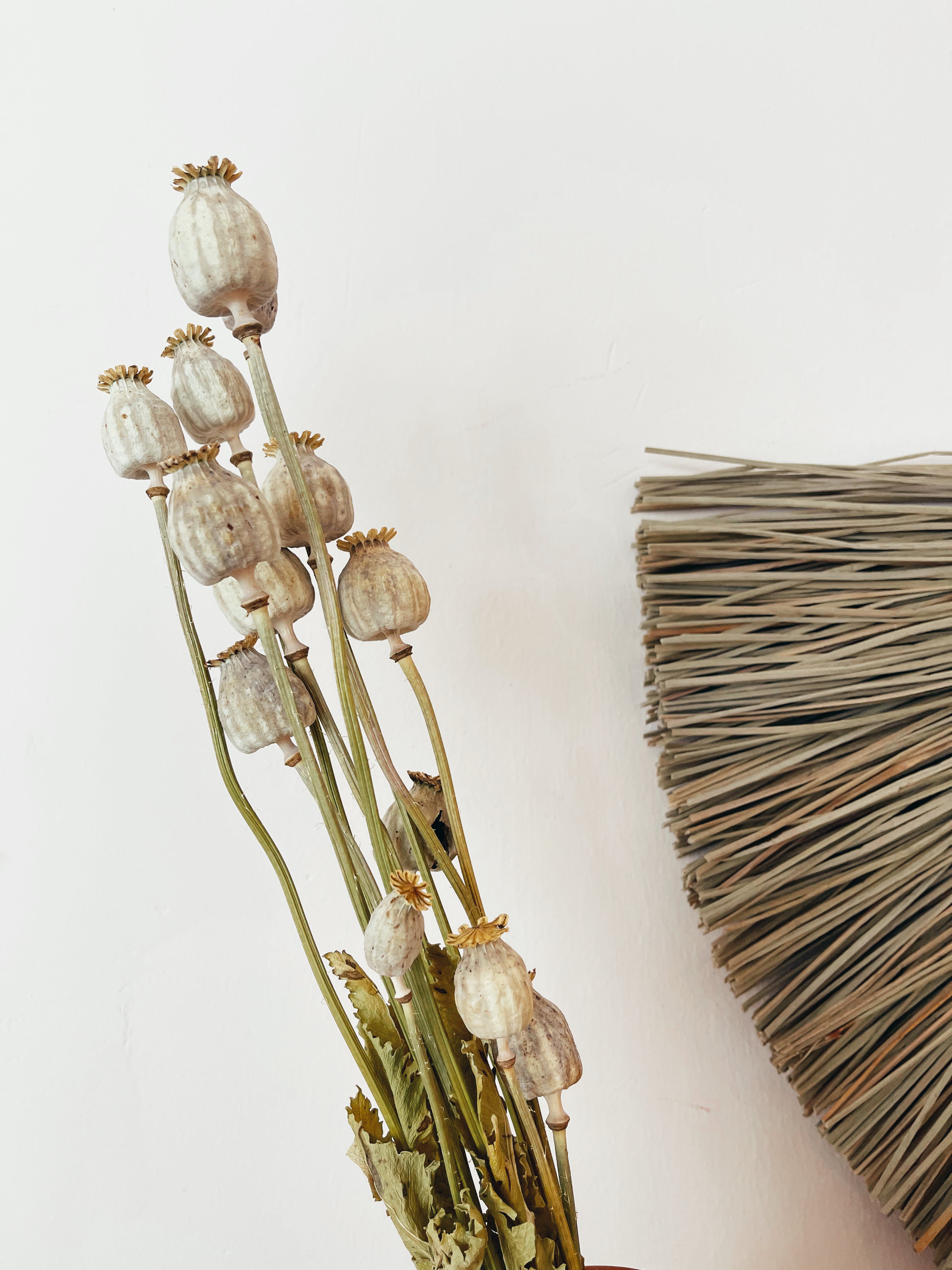 Bouquet di fiori secchi Papaver Natural, noti come papaveri. Con toni grigiastri e naturali, sono perfetti per aggiungere un tocco di natura a qualsiasi spazio.