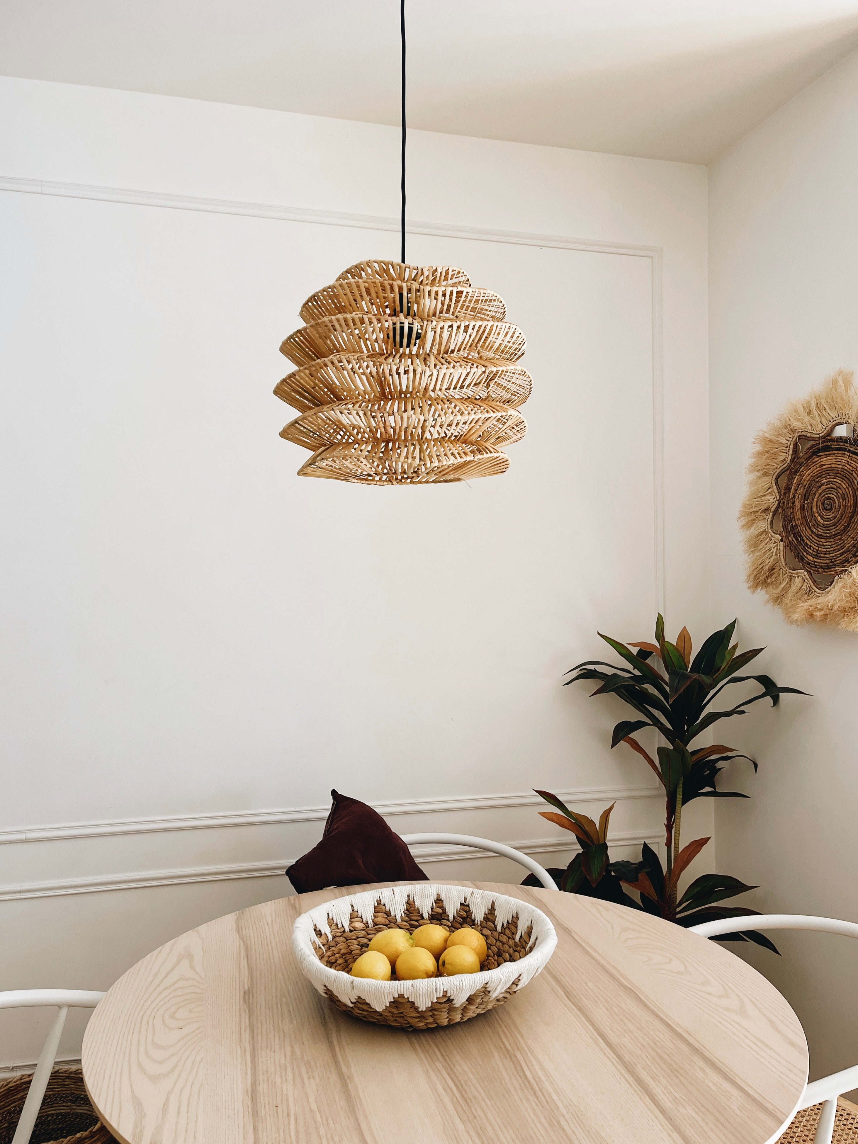 Wij presenteren onze elegante Akrema rieten lamp met een exclusief ontwerp en een diameter van 40 cm, perfect om elke ruimte in uw huis te verlichten en te decoreren. Met een sierlijk en charmant ontwerp is deze lamp ideaal om een vleugje natuurlijke stijl aan uw slaapkamer of woonkamer toe te voegen.
