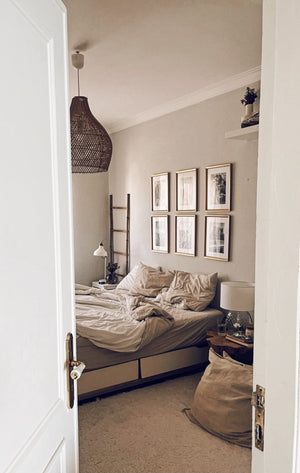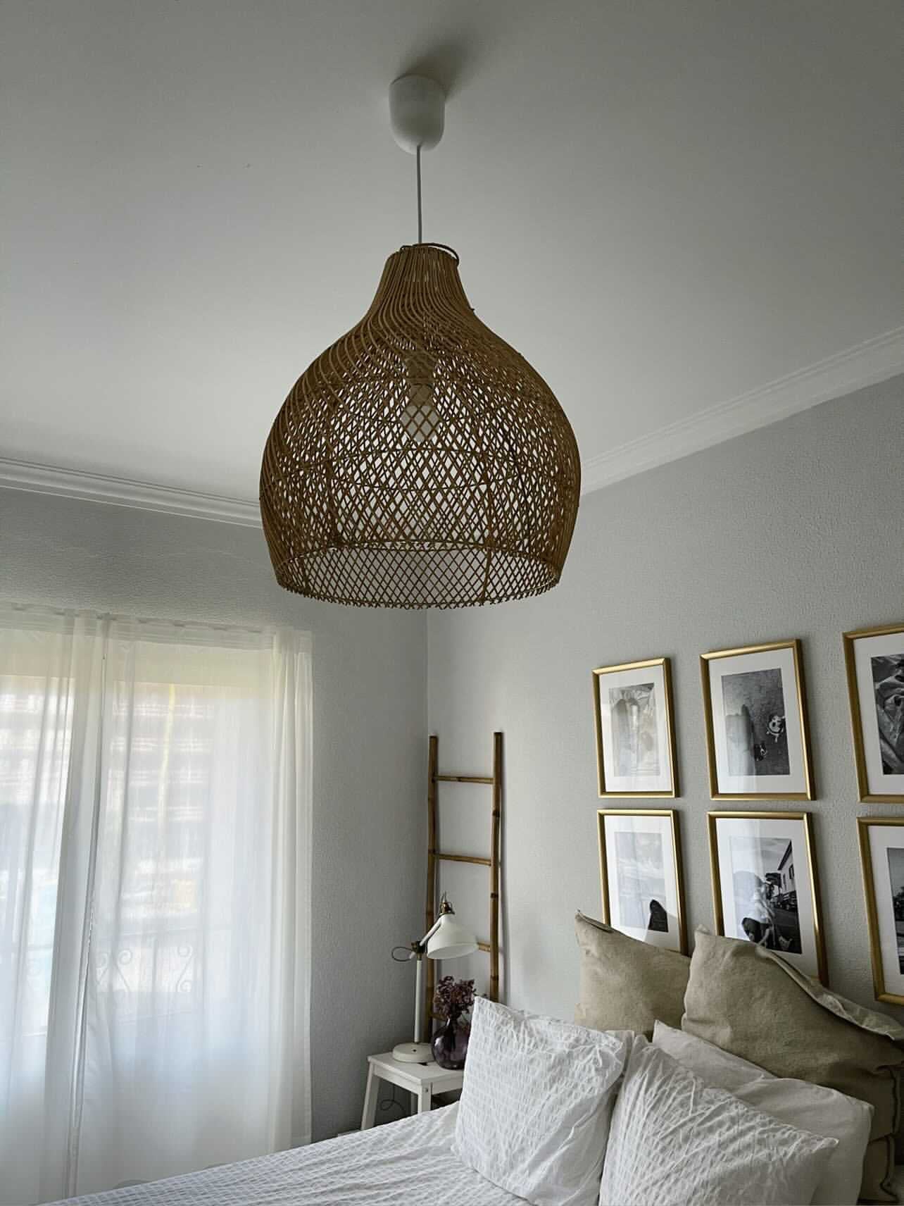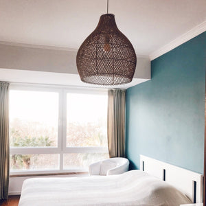 Naast dat het een stijlverklaring is in de woonkamer, kan deze lamp ook een rustieke en charmante toevoeging zijn aan de slaapkamer. Met zijn opvallende aanwezigheid en natuurlijke ontwerp creëert hij een gezellige en ontspannen sfeer, perfect voor momenten van rust en kalmte.