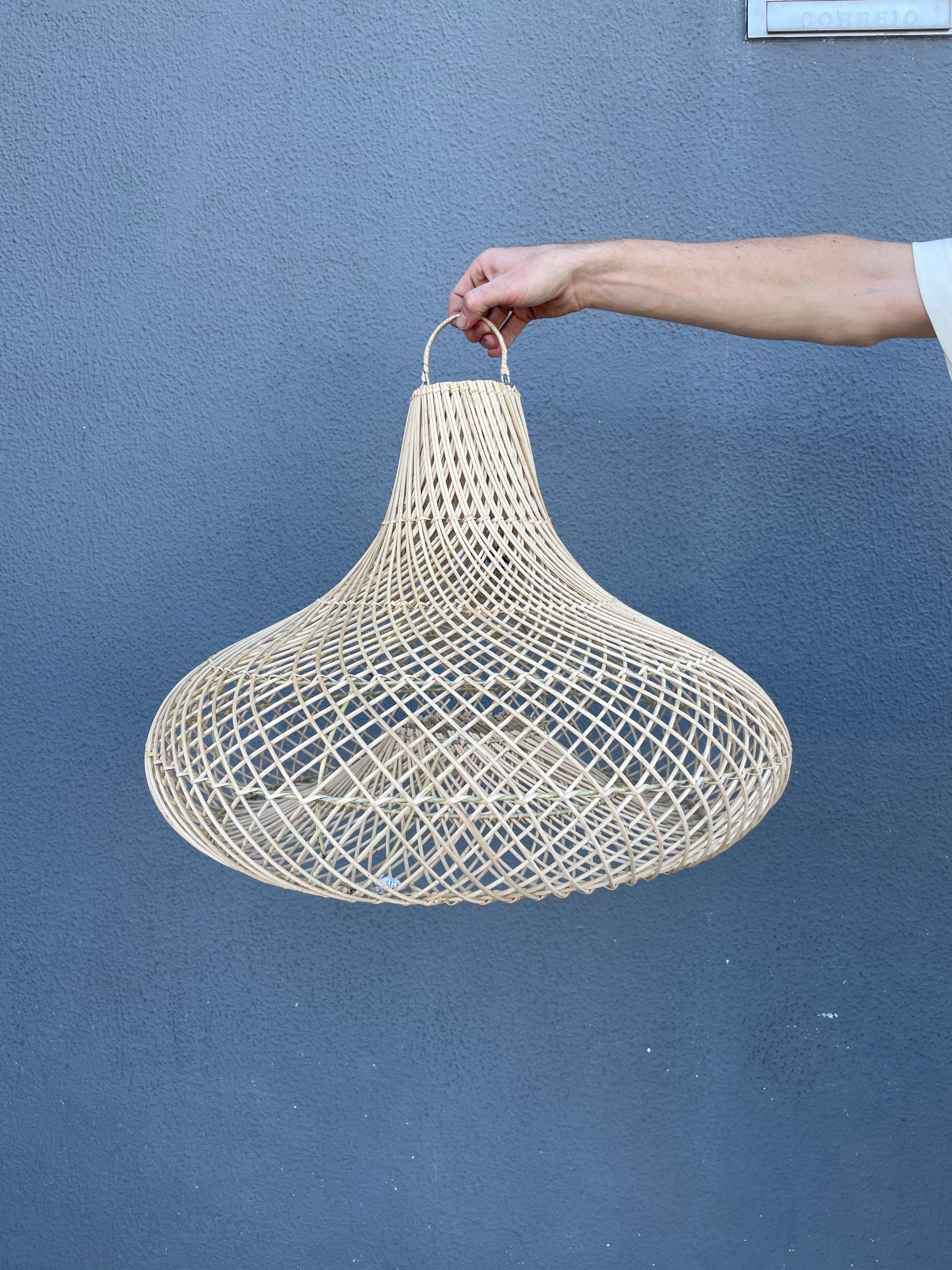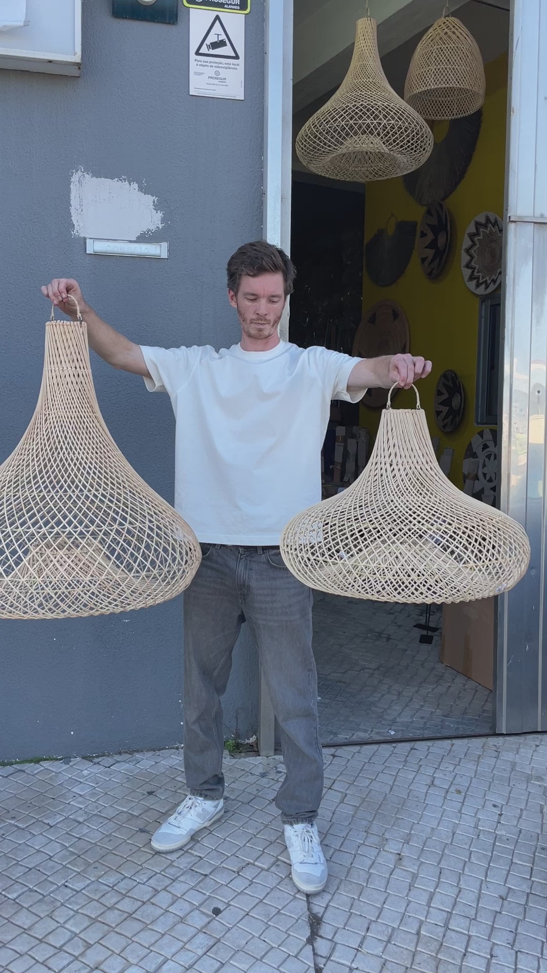 Verlicht uw ruimte met onze verfijnde Kara plafondlamp van riet, met een diameter van 60 cm.