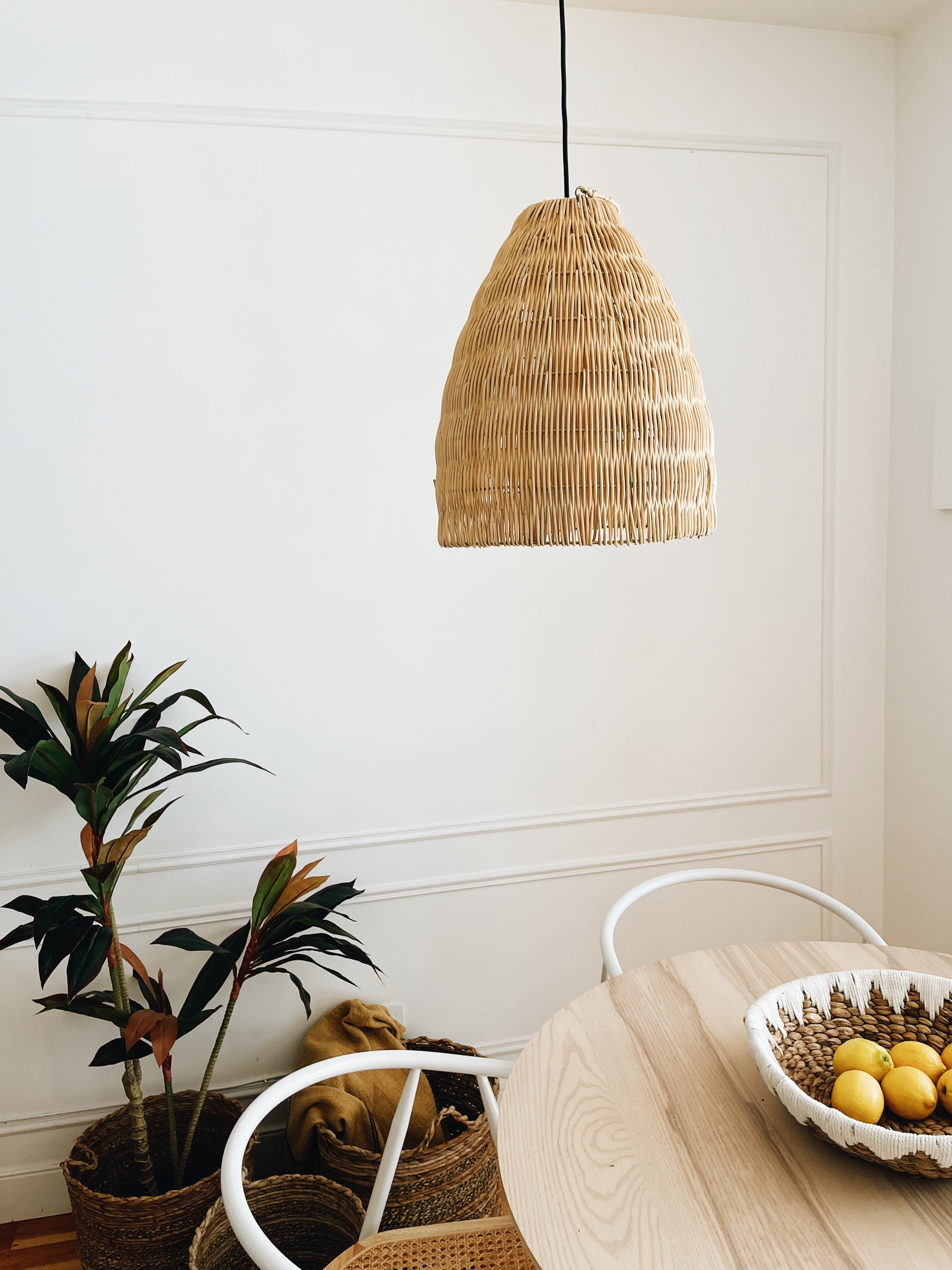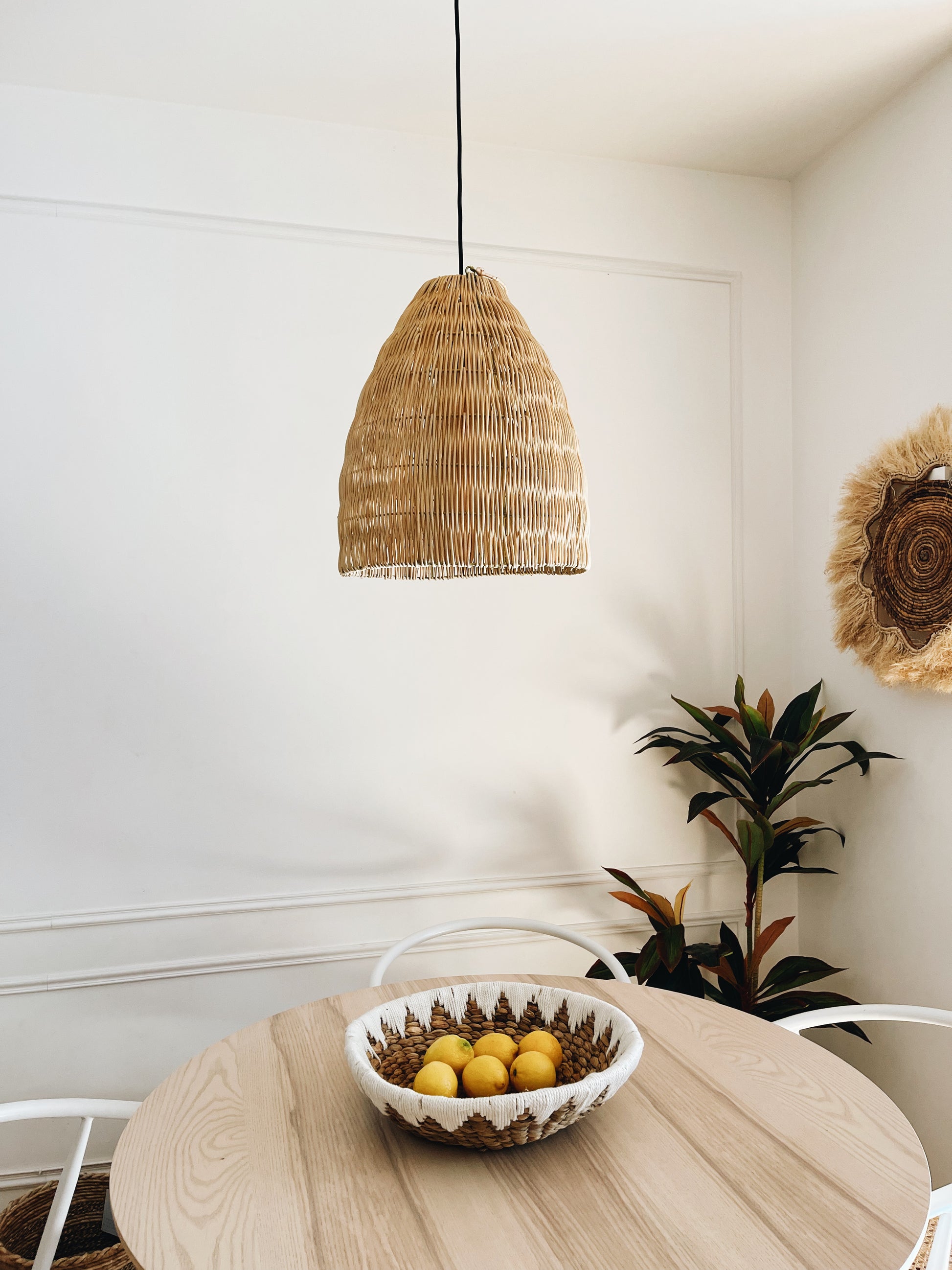 Met de hand gemaakt met ambachtelijk vakmanschap, geeft het ingewikkelde geweven patroon van rotan een unieke en verfijnde uitstraling aan de ruimte. Het zachte en diffuse licht dat door deze lamp wordt uitgestraald, creëert een warme en uitnodigende sfeer in elke ruimte.