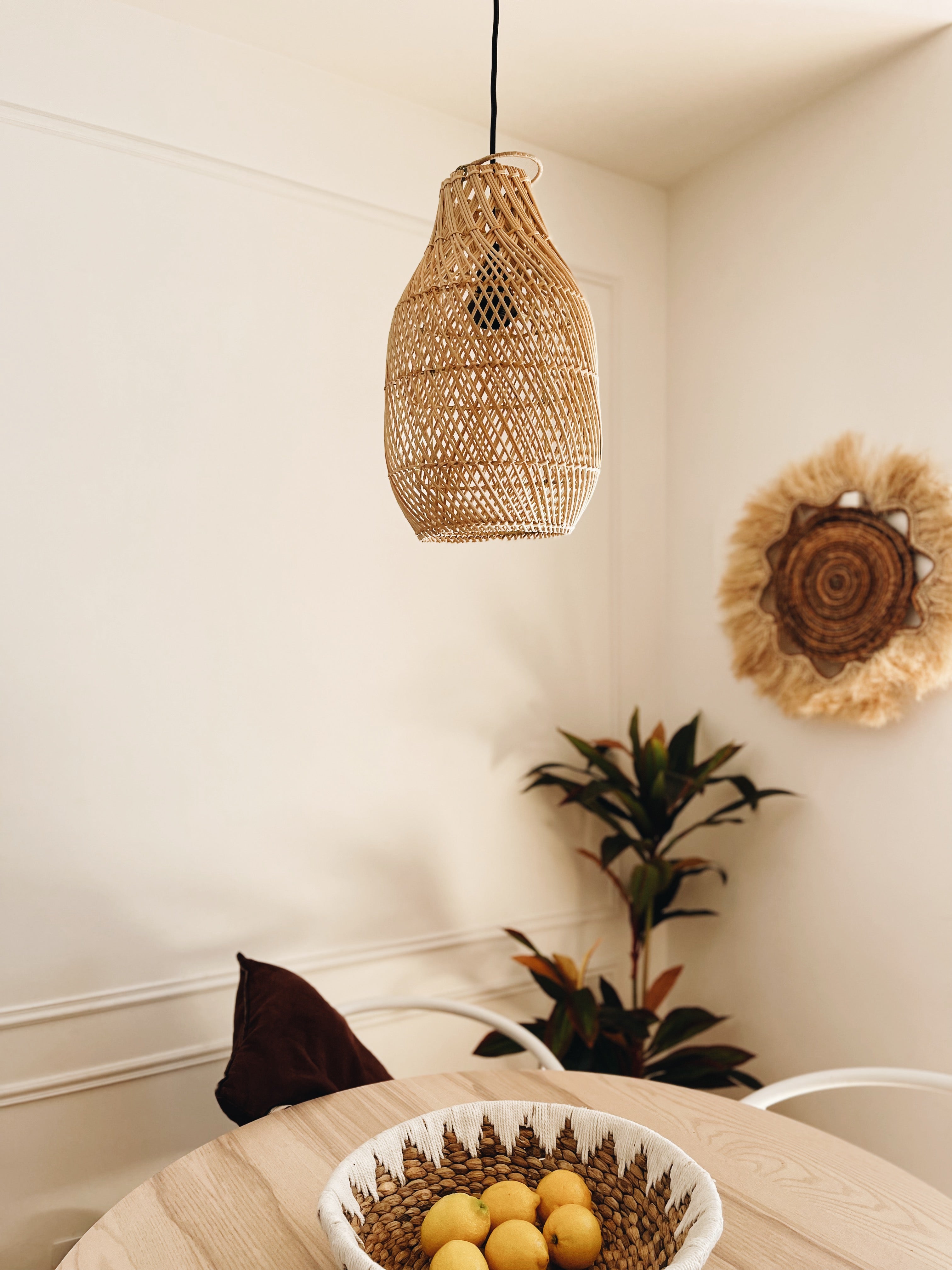 Voeg een vleugje originaliteit toe aan uw verlichting met onze exclusieve Sepang rieten lamp in de vorm van een fles, met een charmant verweven patroon.