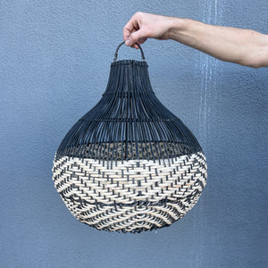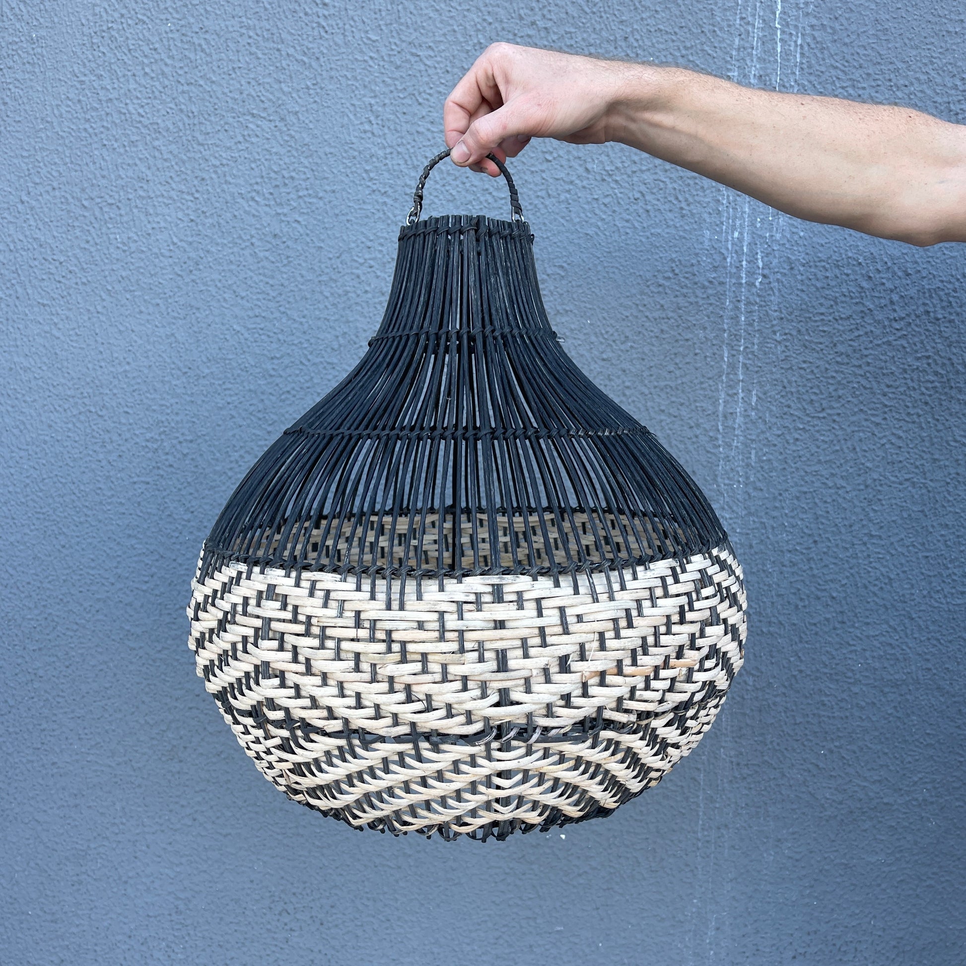 De geschudde vorm, met zijn vloeiende en dynamische lijnen, past perfect bij de natuurlijke textuur van riet, waardoor een verlichtingsstuk ontstaat dat zowel functioneel als decoratief is. De zwarte kleur voegt een vleugje verfijning toe, terwijl het vlechten van het riet zorgt voor een zachte en gezellige verlichting, waardoor een uitnodigende en rustige sfeer ontstaat.
