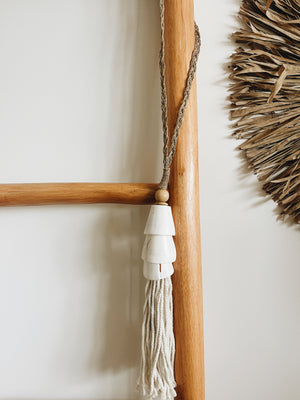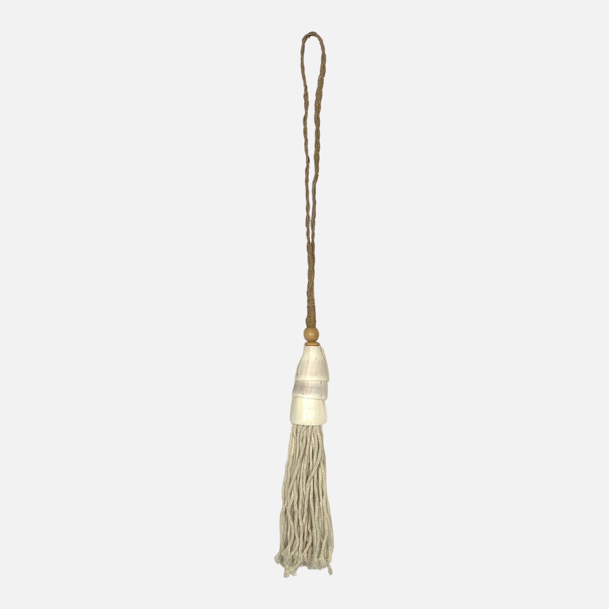 Kent u onze betoverende decoratieve accessoire Caicoli Sand Beach, bestaande uit witte schelpen en katoen franjes al? Het is een stuk, van lange koord, die een boho chic charme toevoegt aan elke ruimte in uw huis.