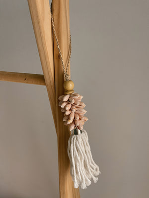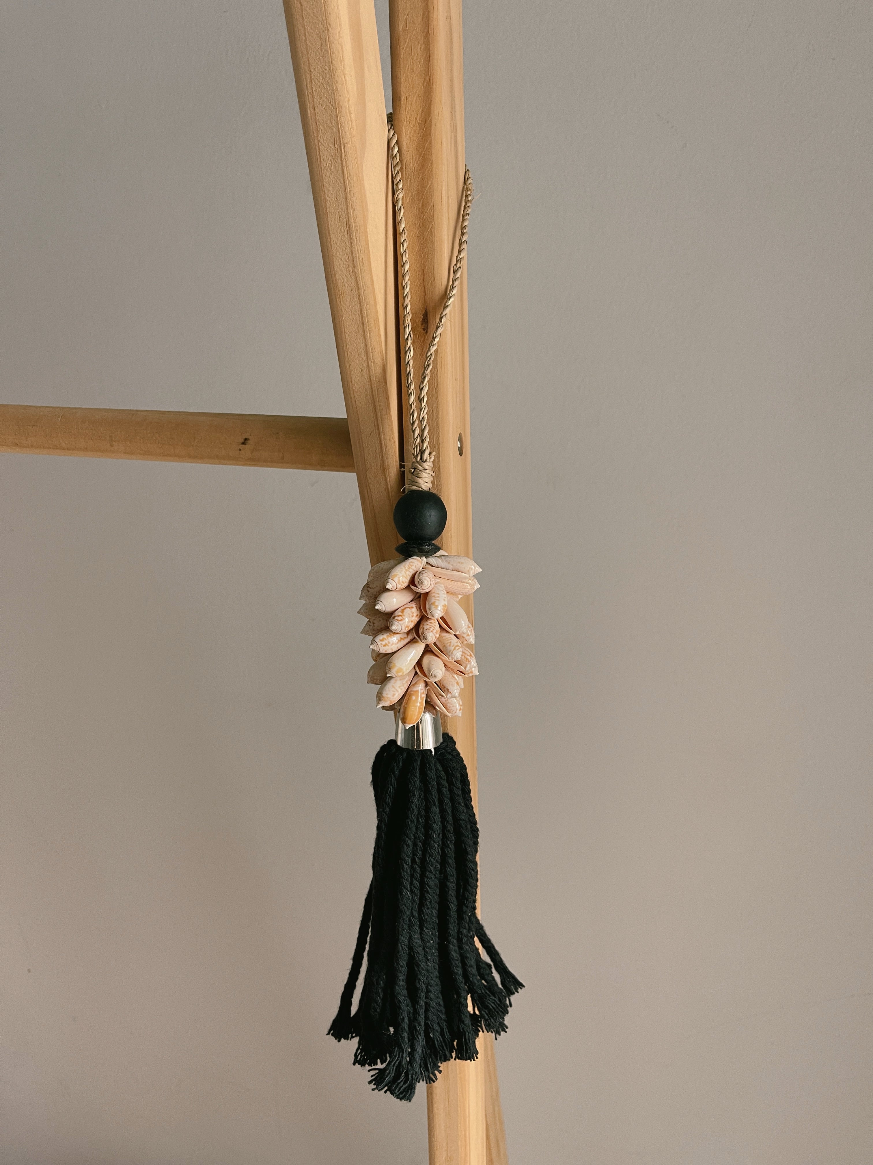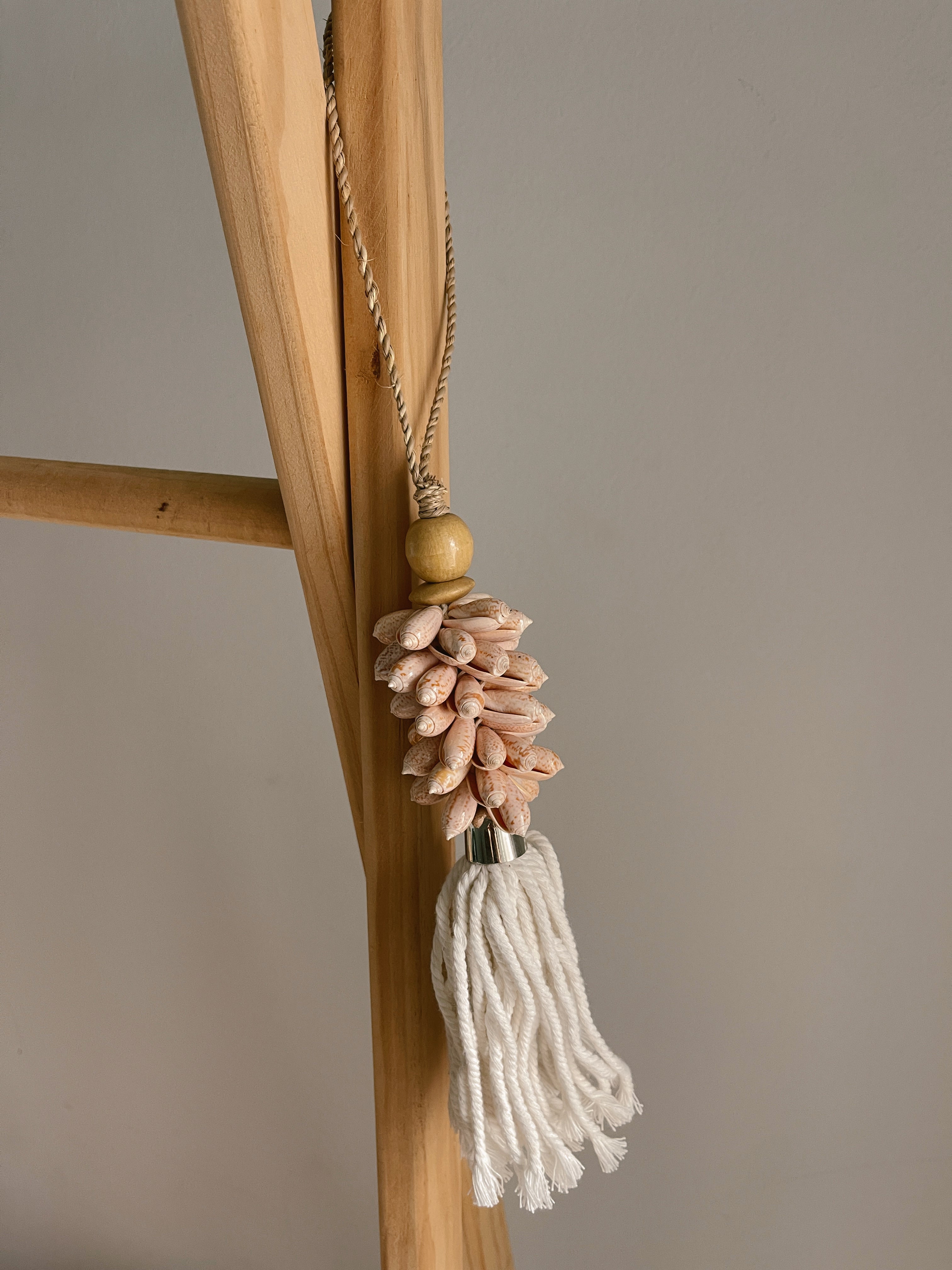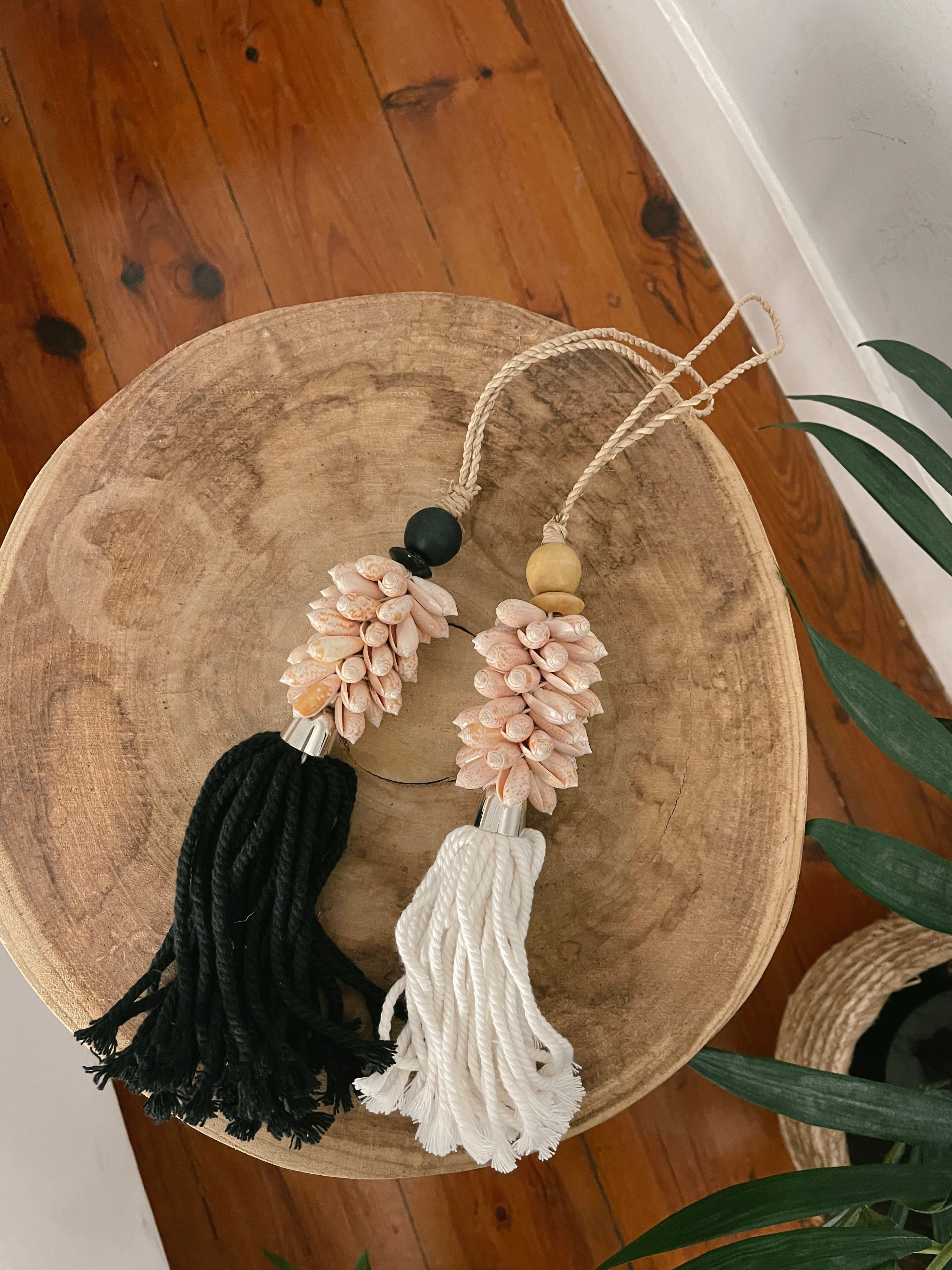 Kent u onze betoverende decoratieve accessoire Jaco Pink, bestaande uit schelpen in roze tinten en de franjes van katoen? Het is een stuk, van korte koord, die een boho chic charme toevoegt aan elke ruimte in uw huis. Verkrijgbaar in wit en zwart.