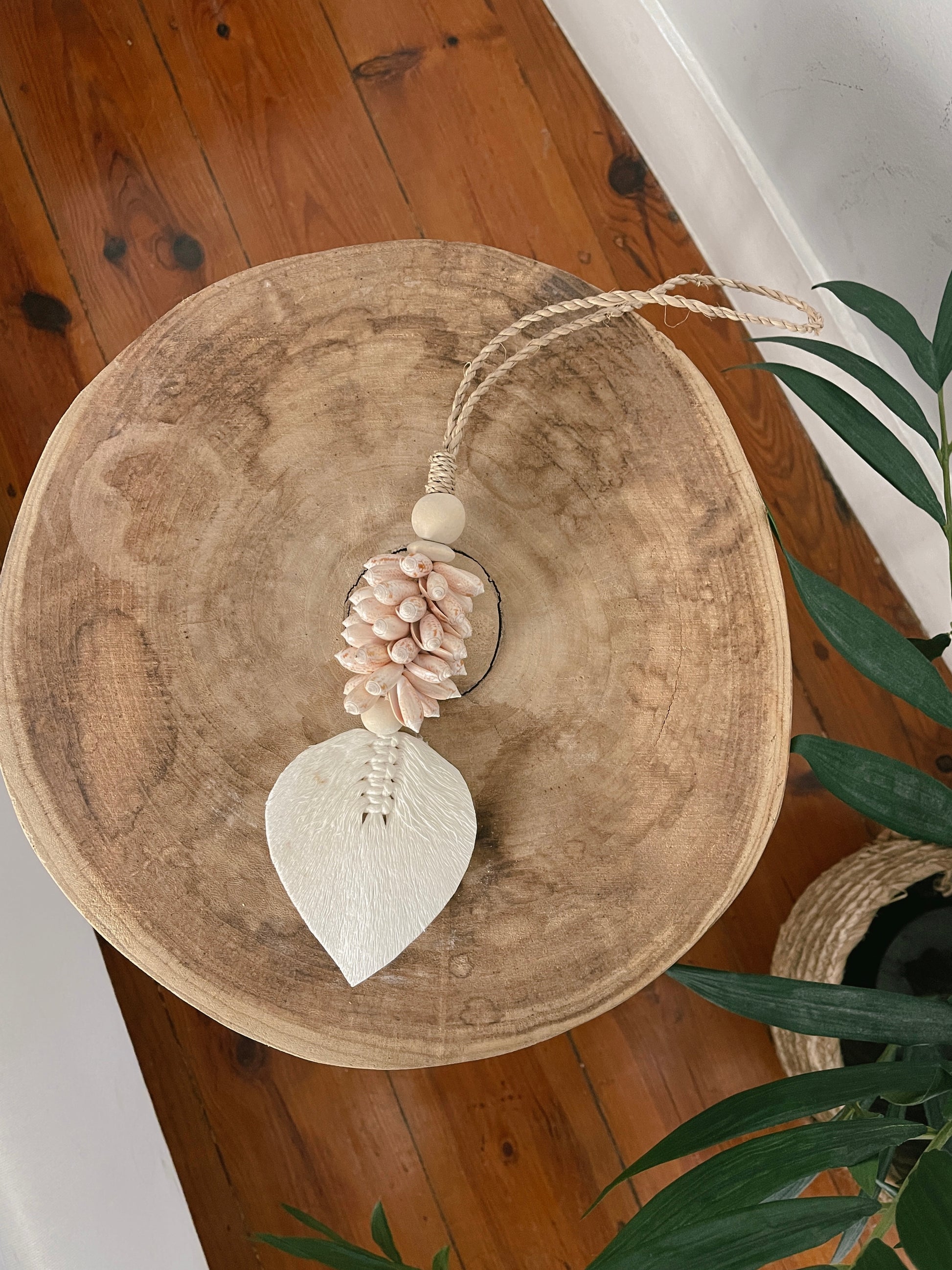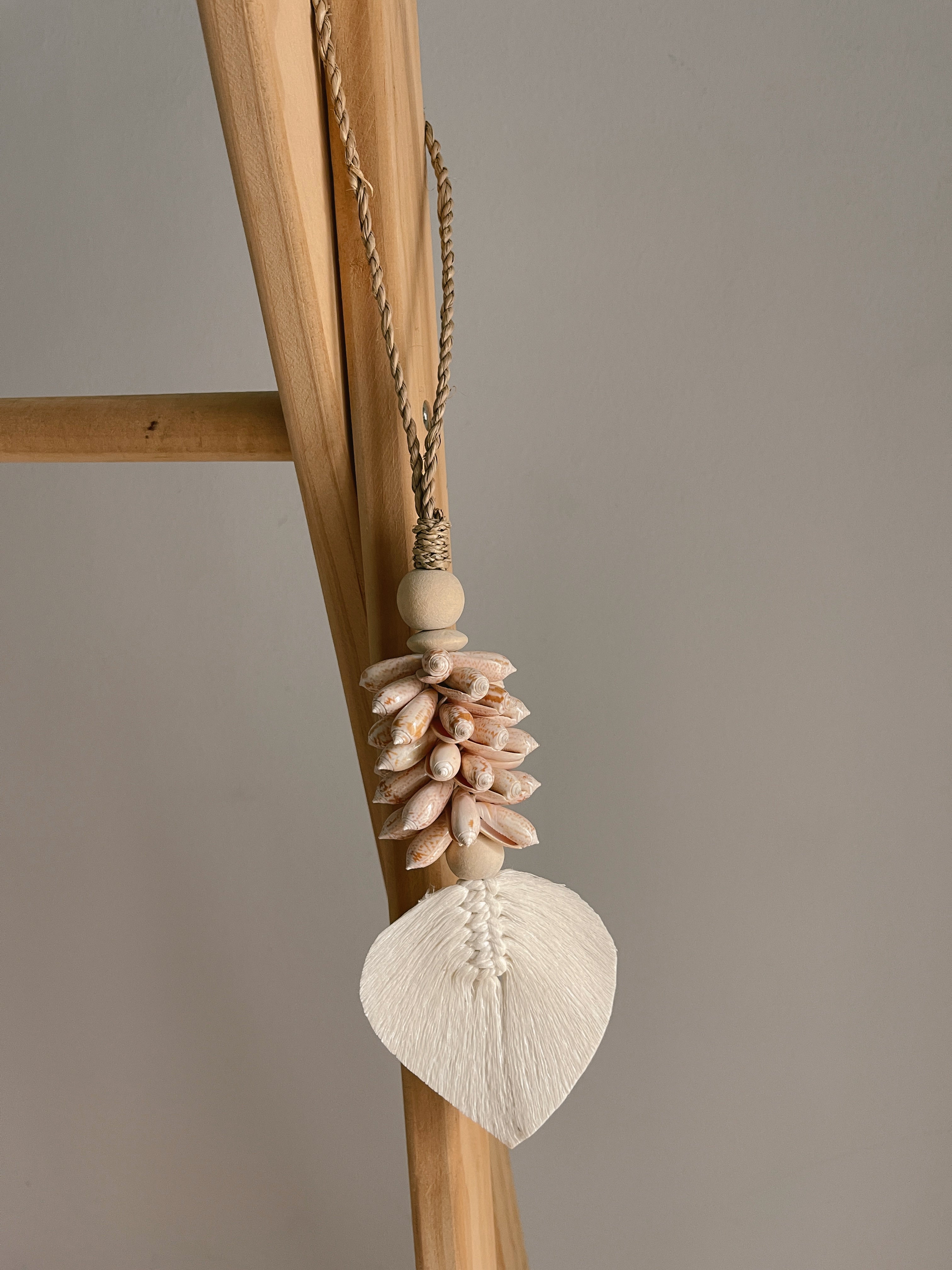 Hangend aan een gordijn in de slaapkamer, aan de deurknoppen, aan de muur of als decoratie op een plank in de woonkamer, voegt deze hanger een kustachtige en ontspannen charme toe aan elke omgeving.