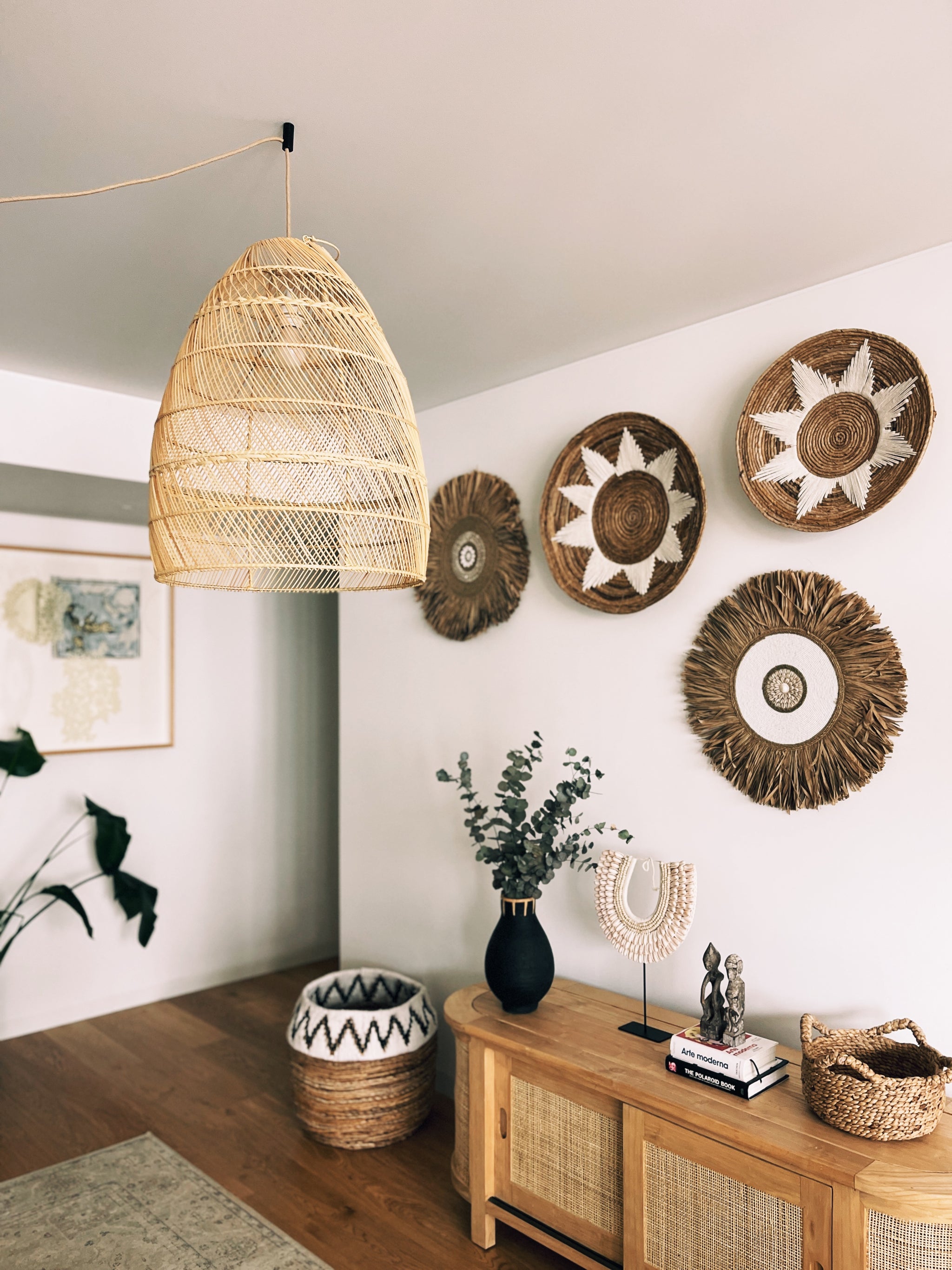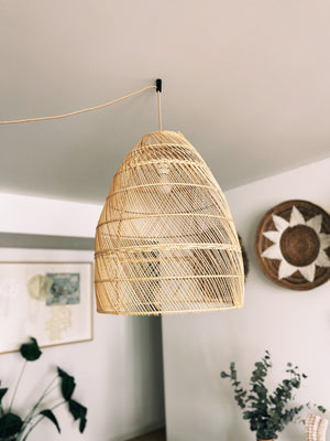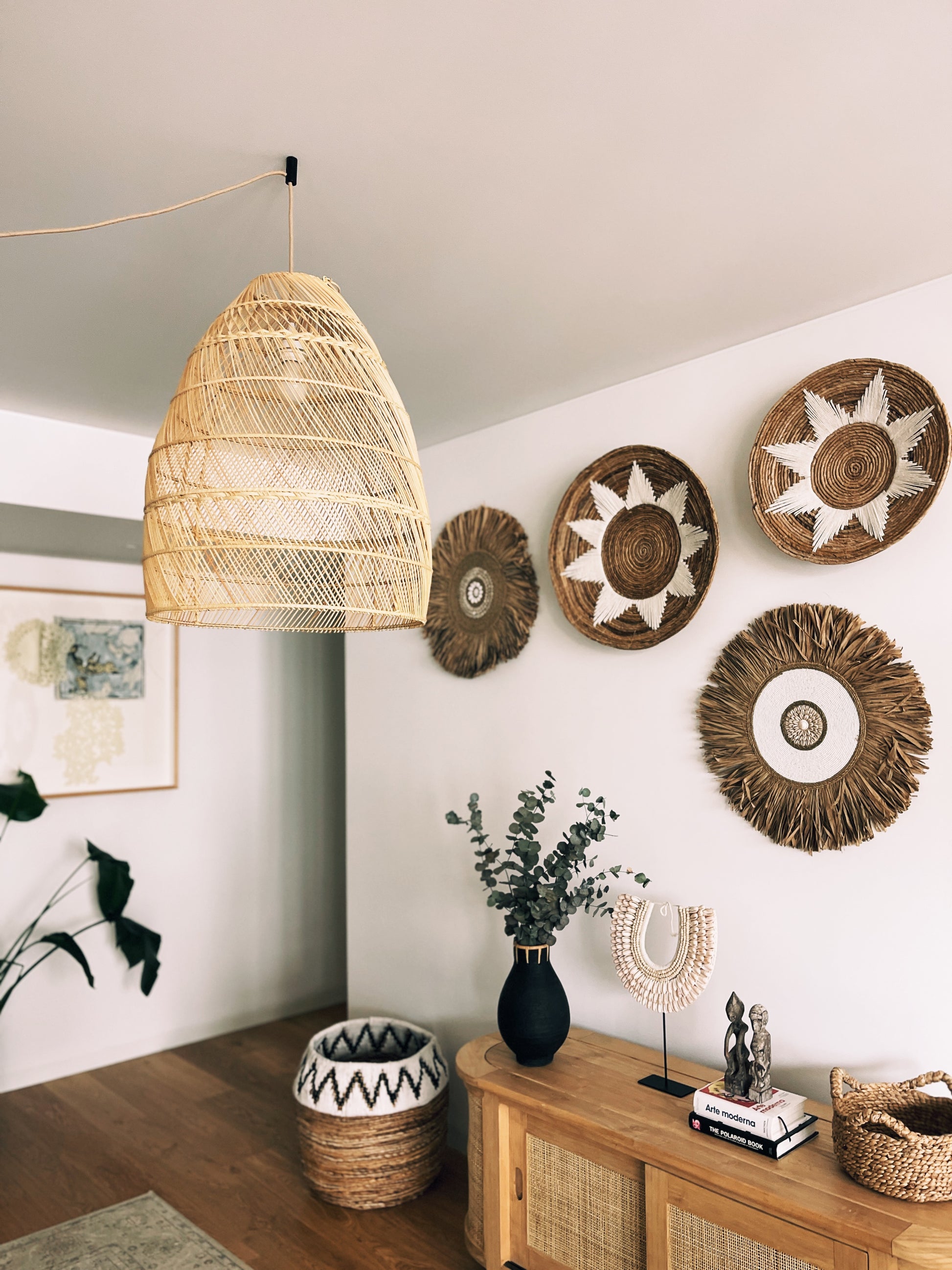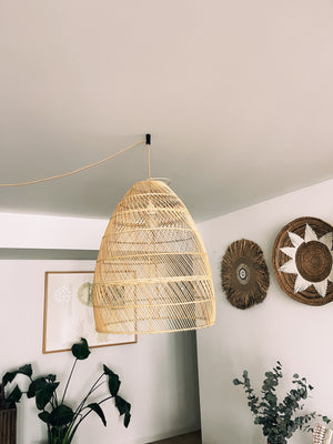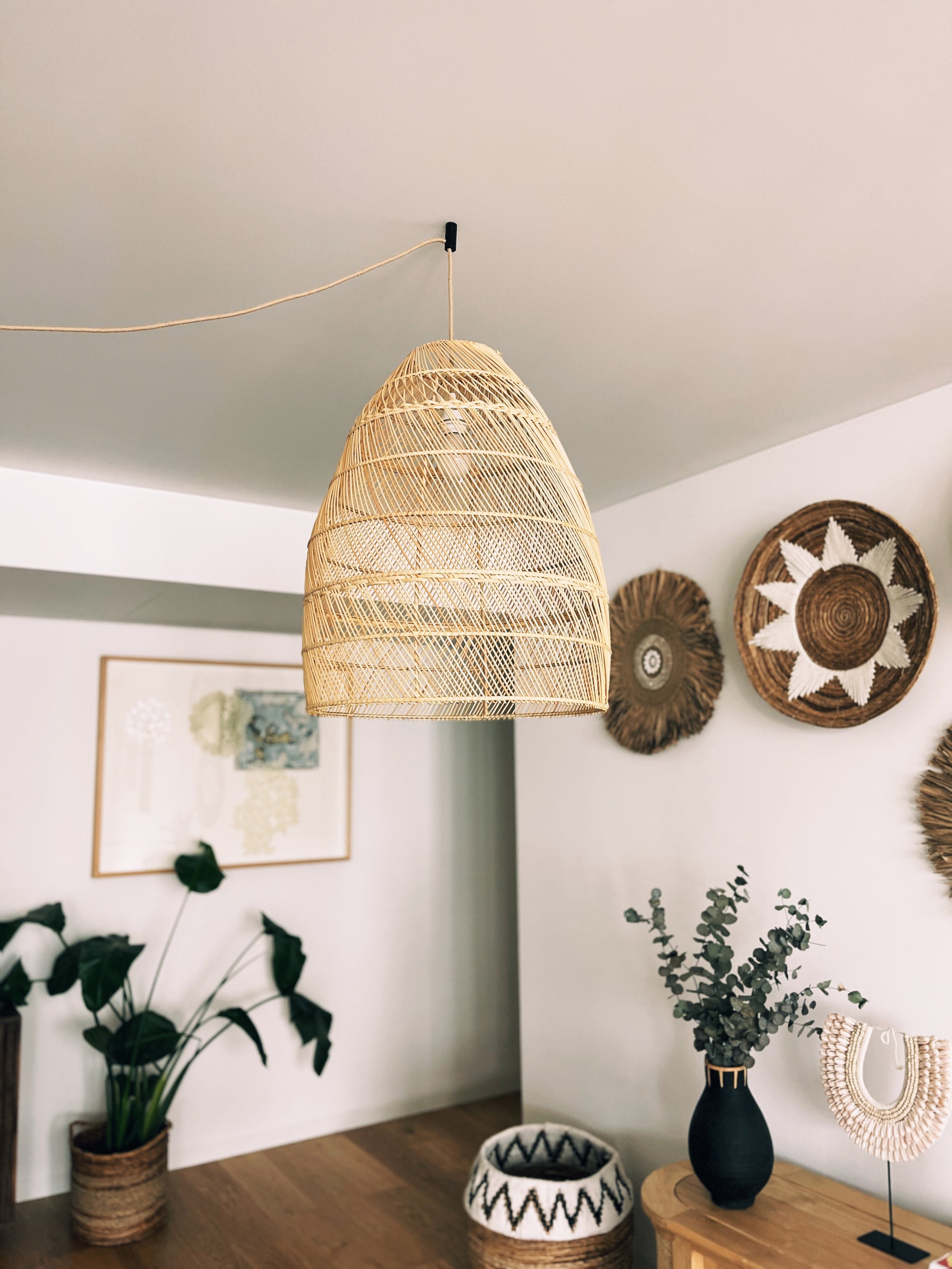 Omarm de boho chic vibes en warme, aardse tinten die bij dit unieke stuk komen. Aangezien dit een natuurlijke rotan lampenkap is, zal het een boho sfeer creëren in elke kamer waar je de rotan hanglamp ophangt. Het patroon van de lampenkap zal een aangename schaduw op je plafond creëren.