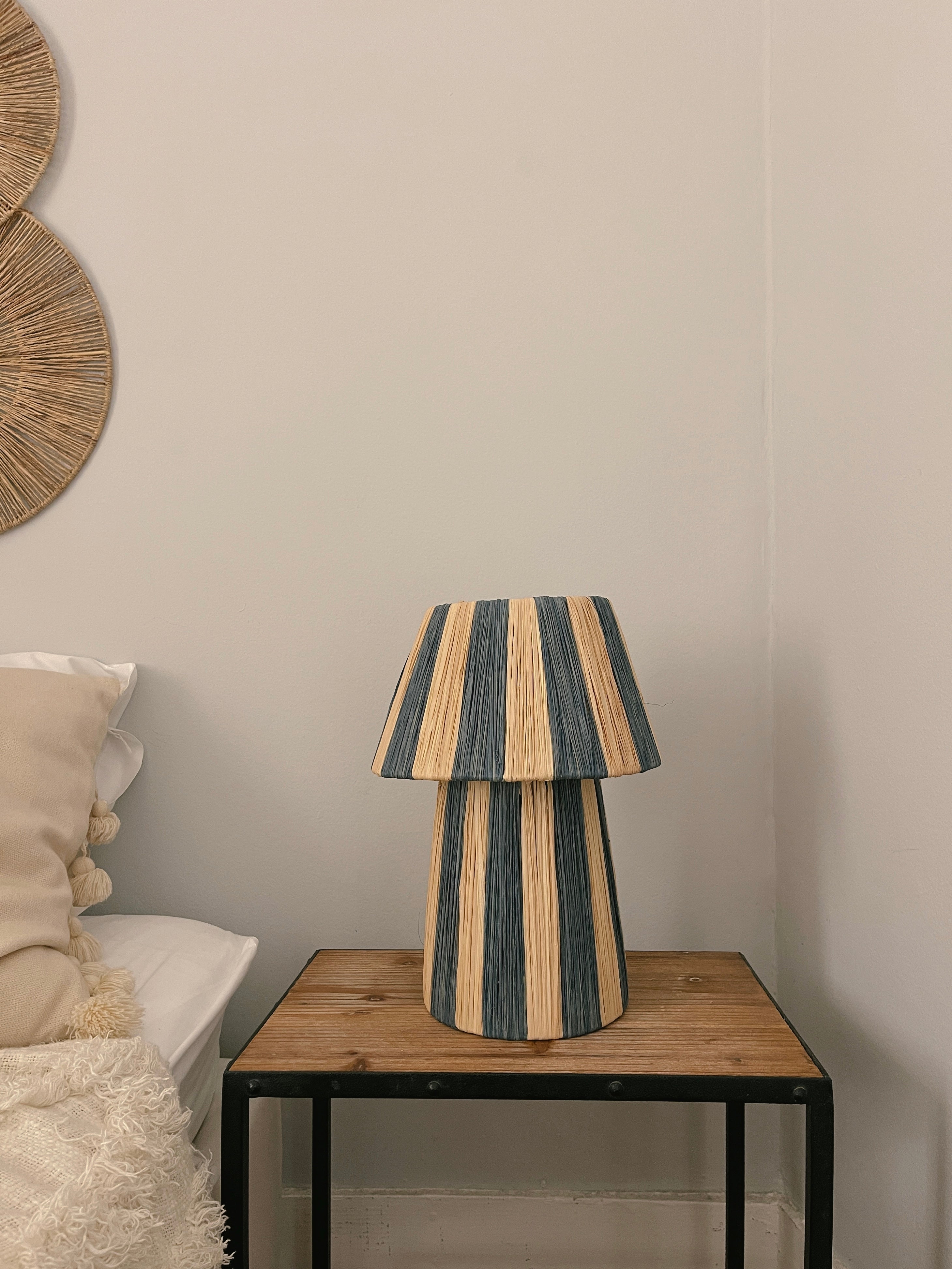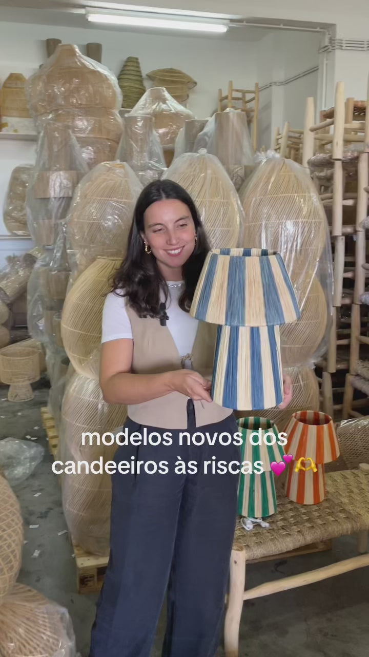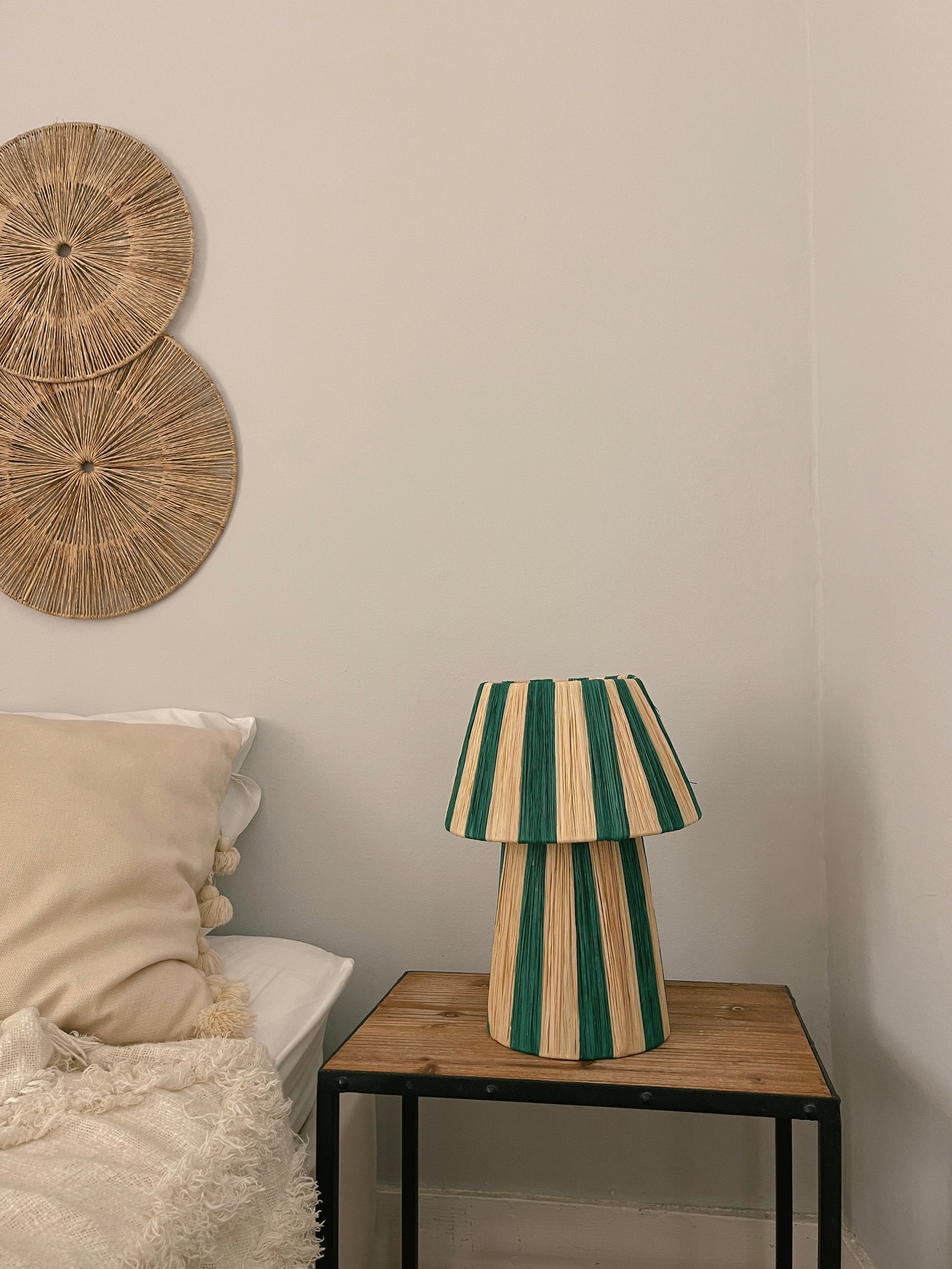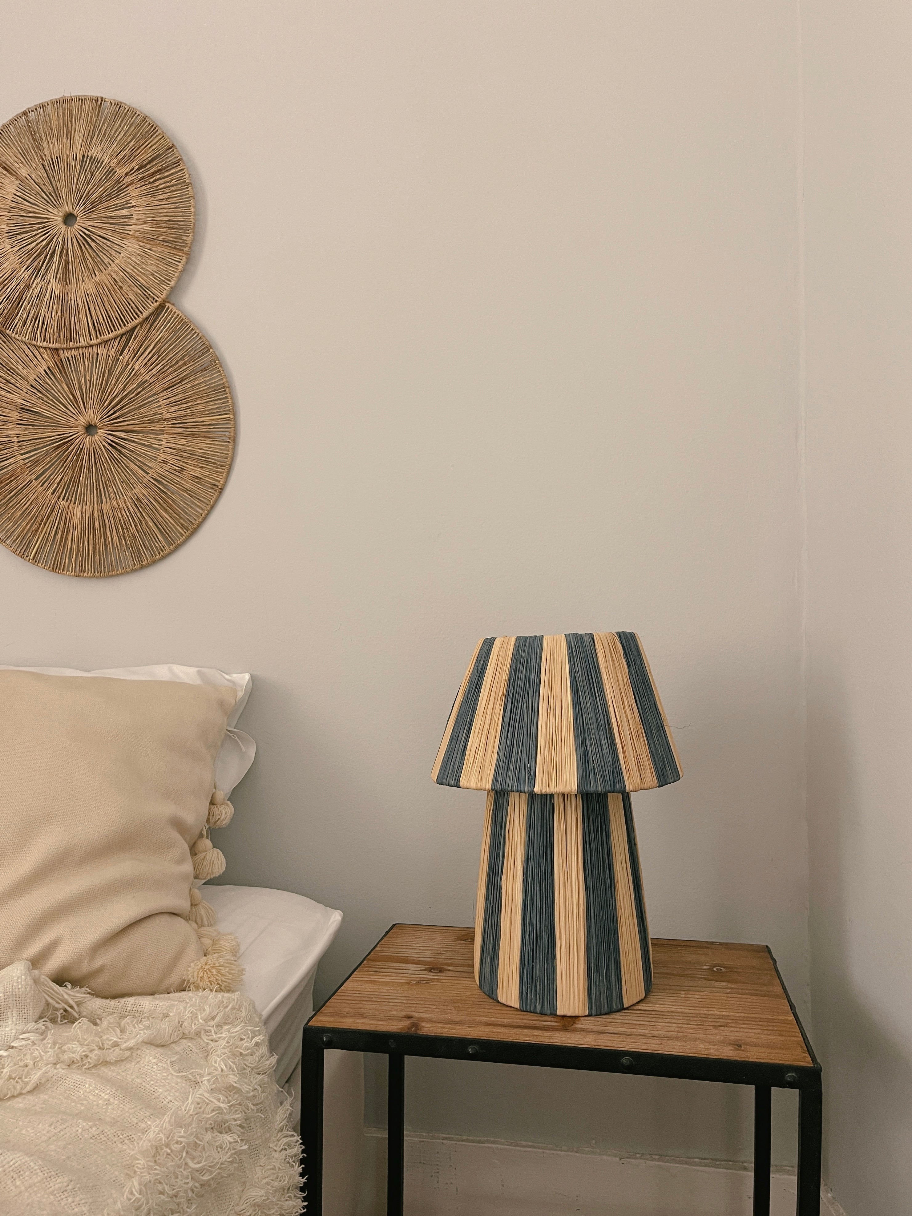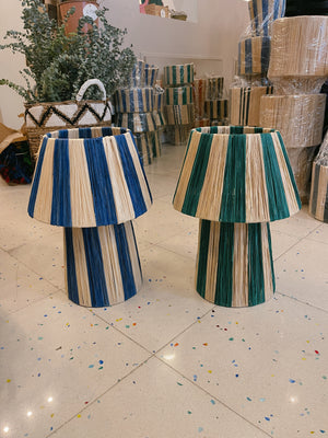 We presenteren de gestreepte lampen die een groot succes zijn! In een nieuw formaat. Wat mooi!! Beschikbaar met strepen in groen, blauw en oranje.