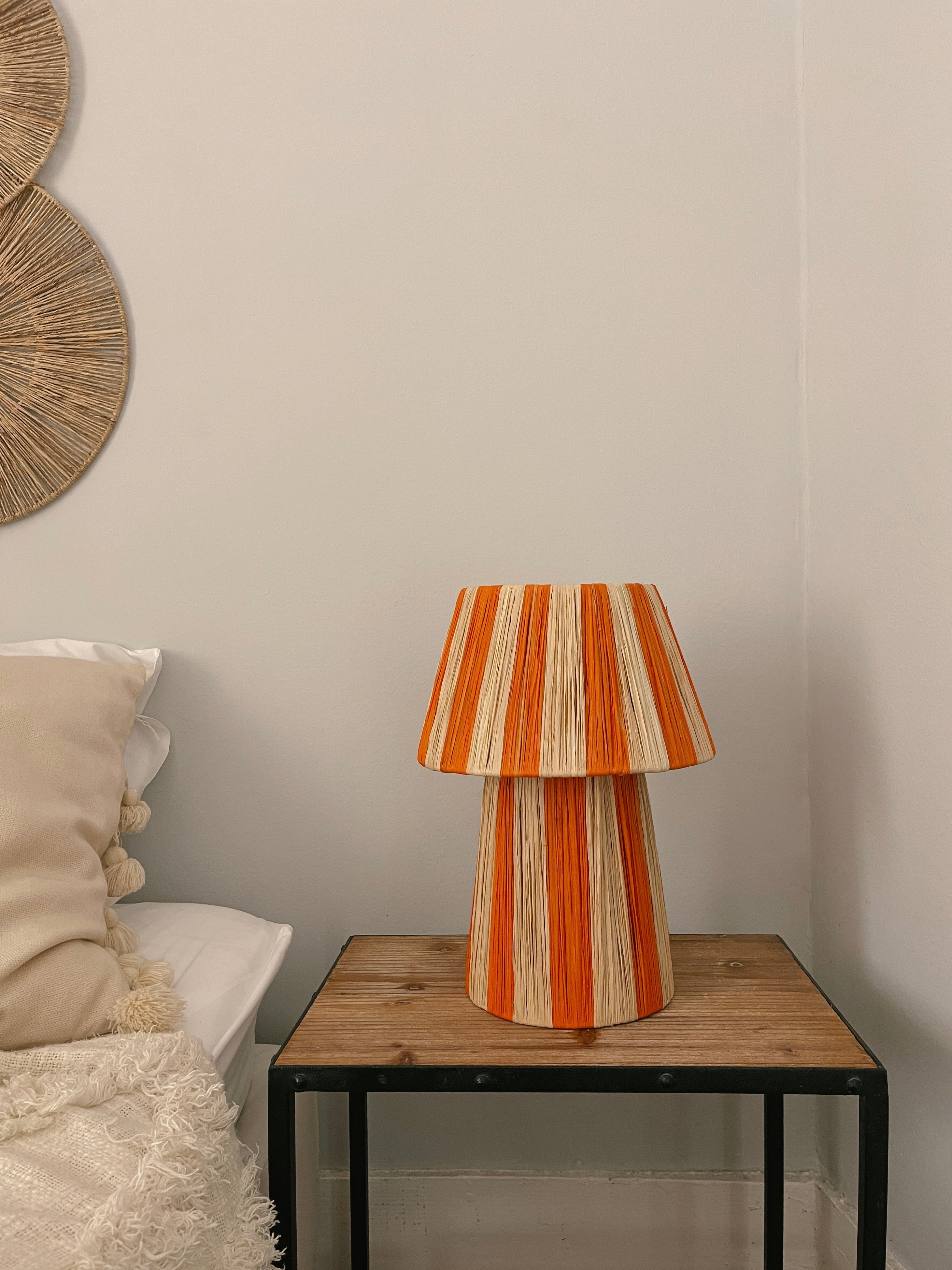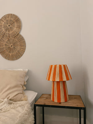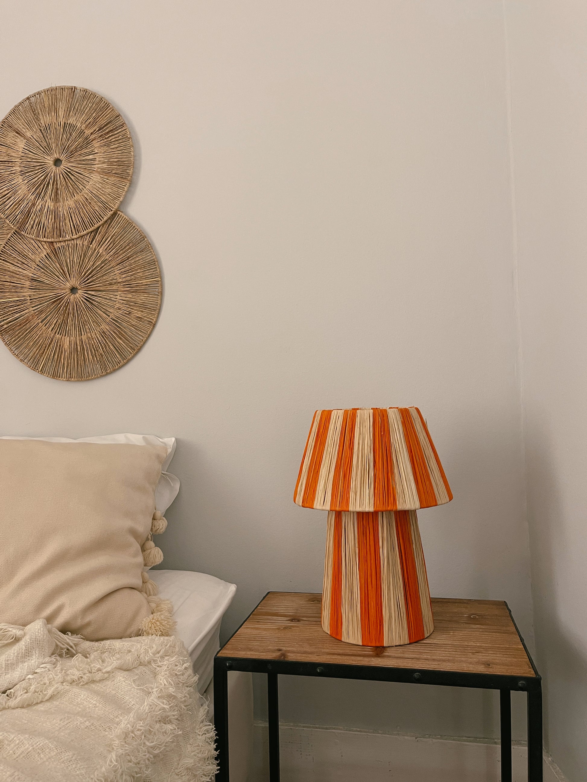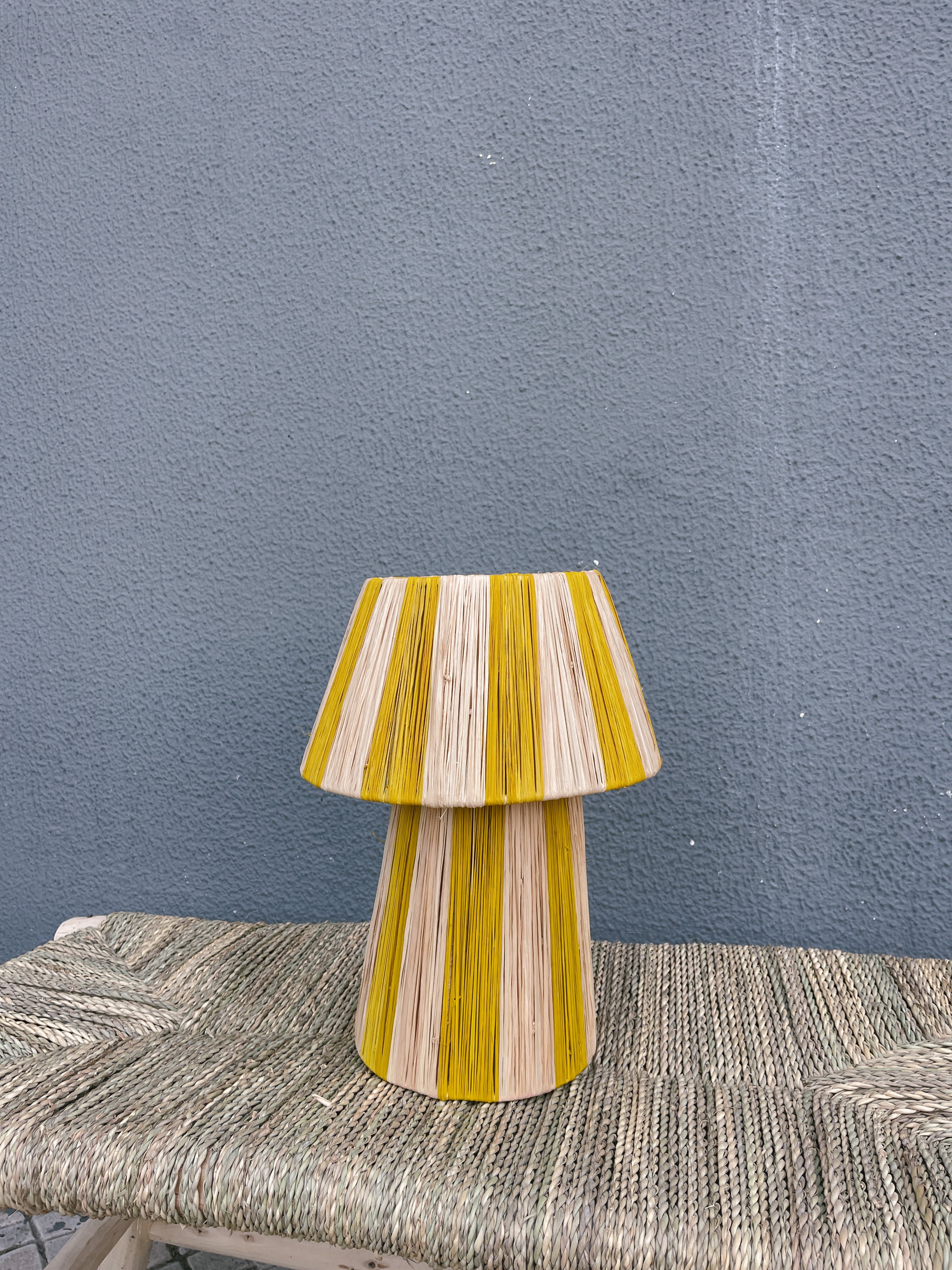 We presenteren de gestreepte lampen die een groot succes zijn! In een nieuw formaat. Wat mooi!! Beschikbaar met strepen in groen, blauw en oranje.