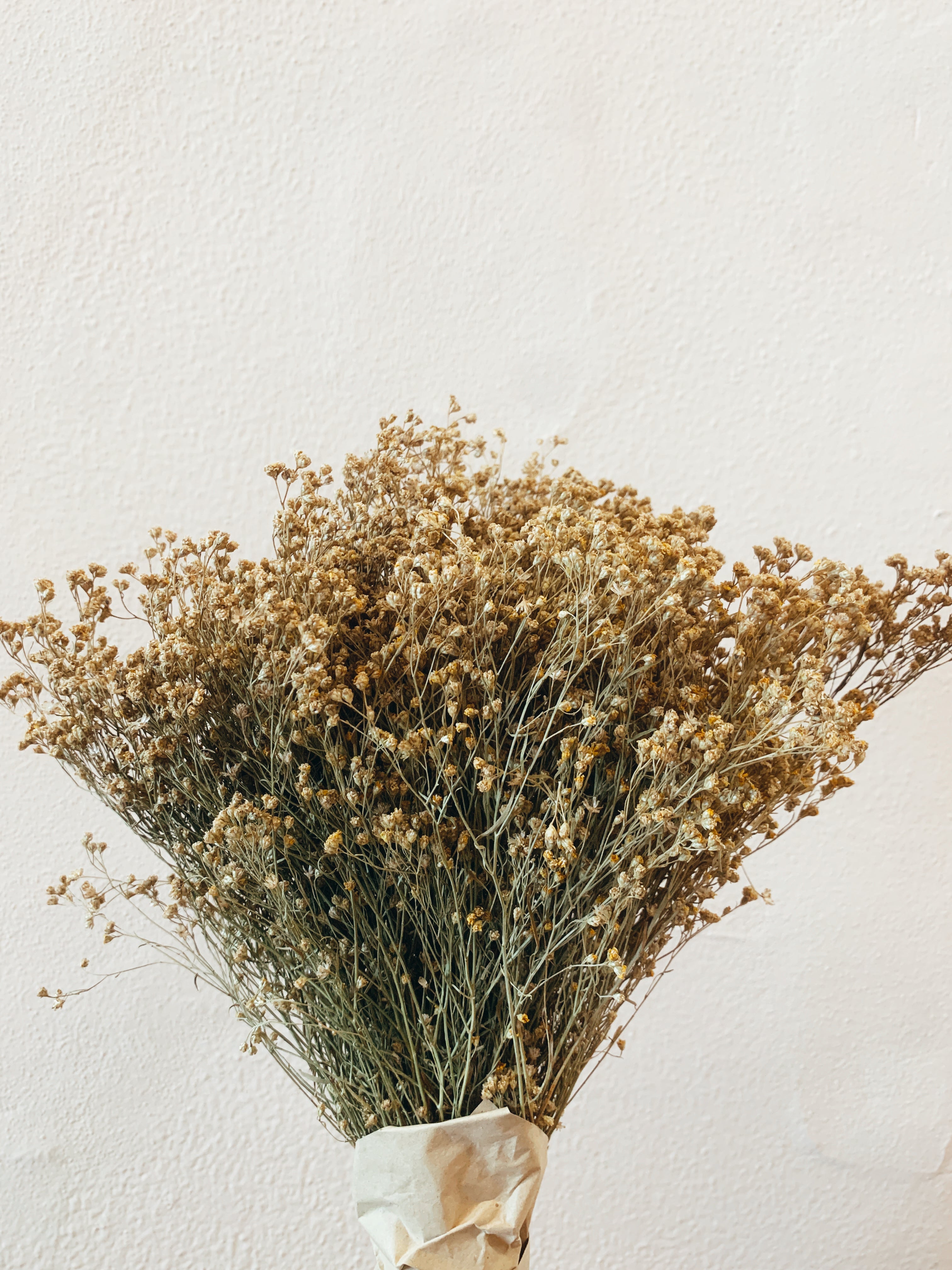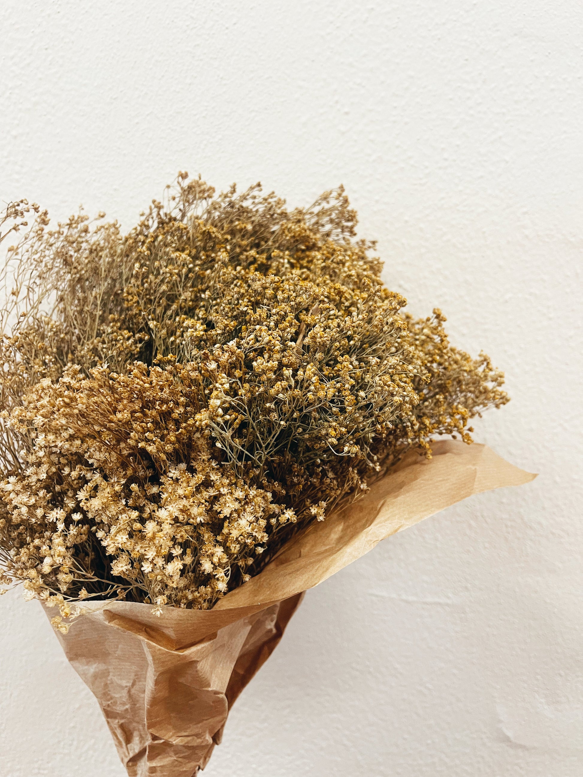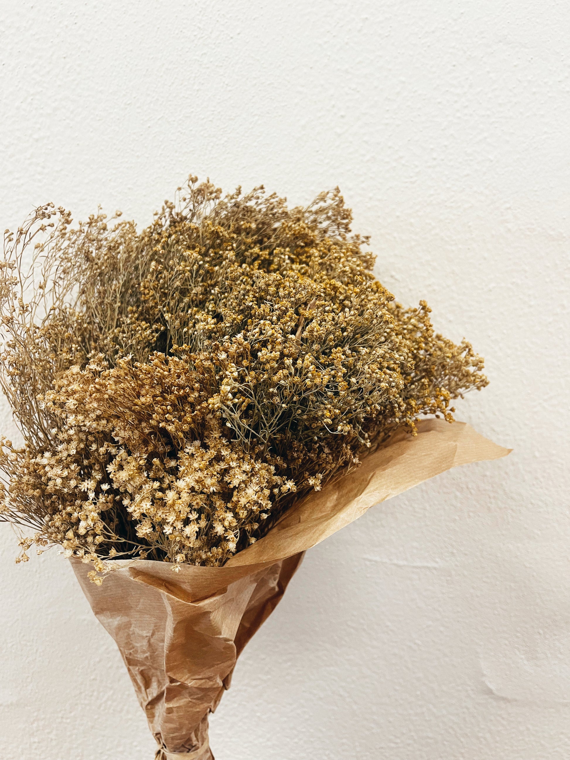 Droogboeket van natuurlijke, geconserveerde bloemen Broom Bloom in neutrale, natuurlijke tinten, perfect om een vleugje vreugde en schoonheid toe te voegen, vullen elke ruimte.