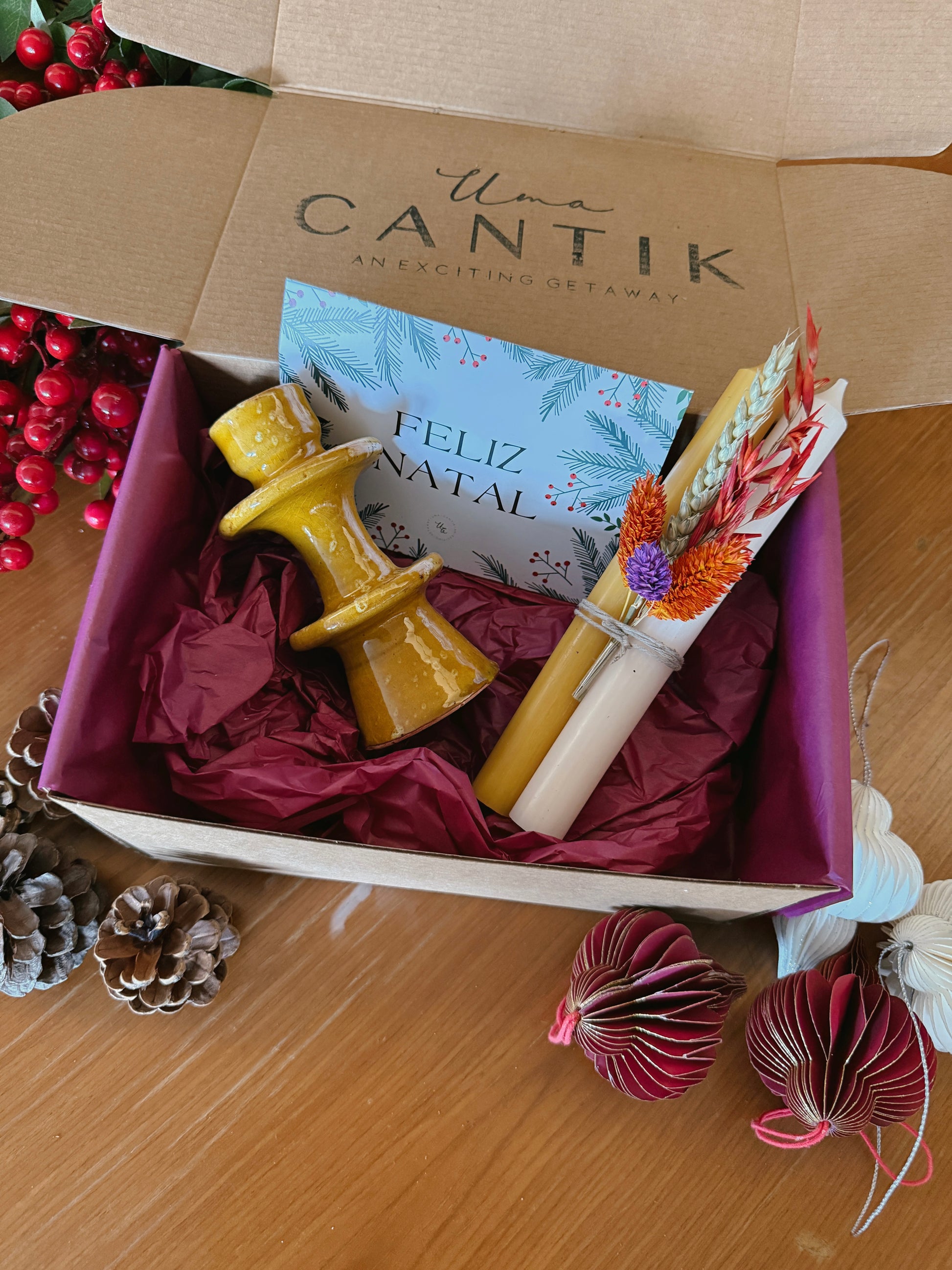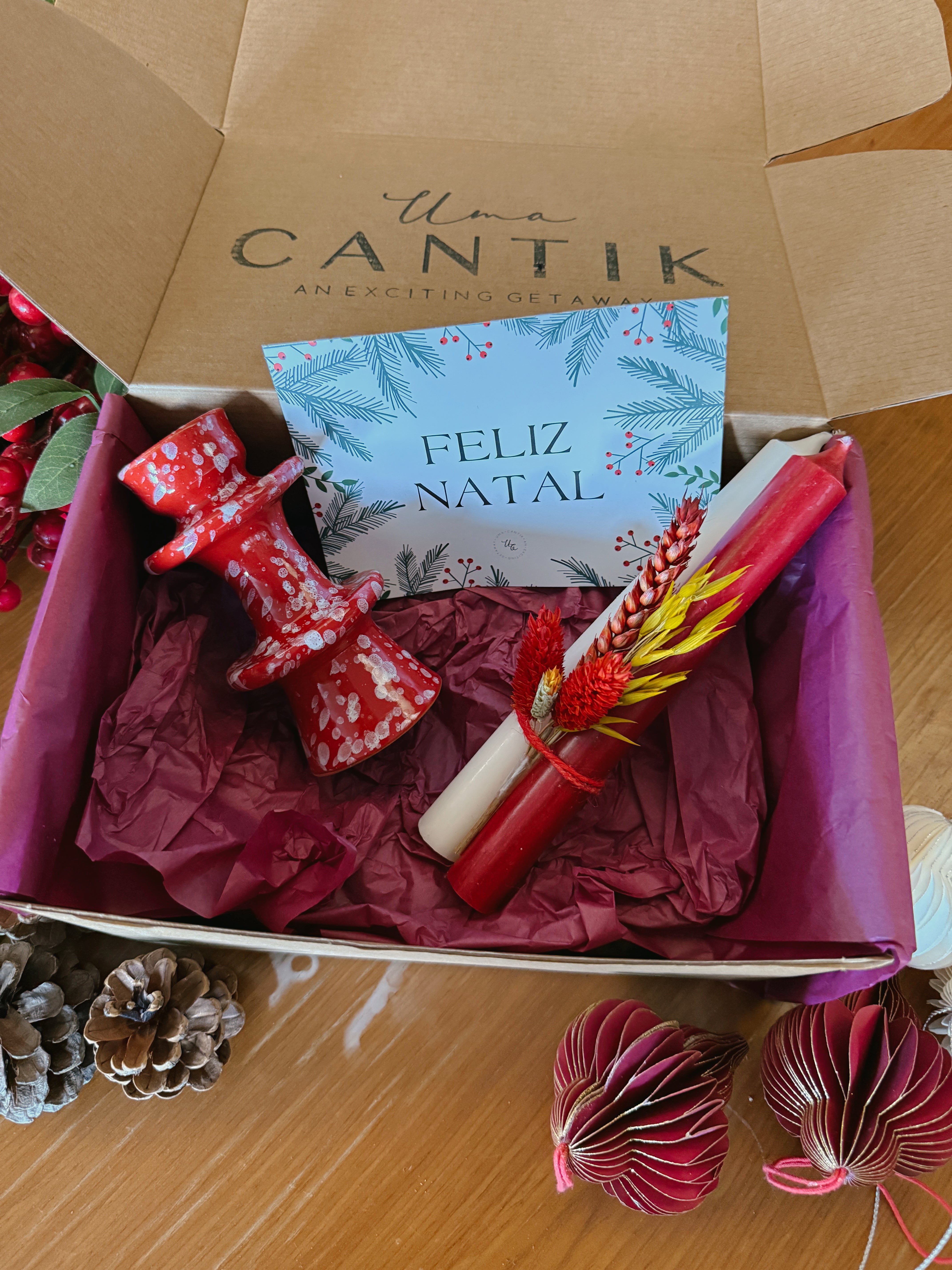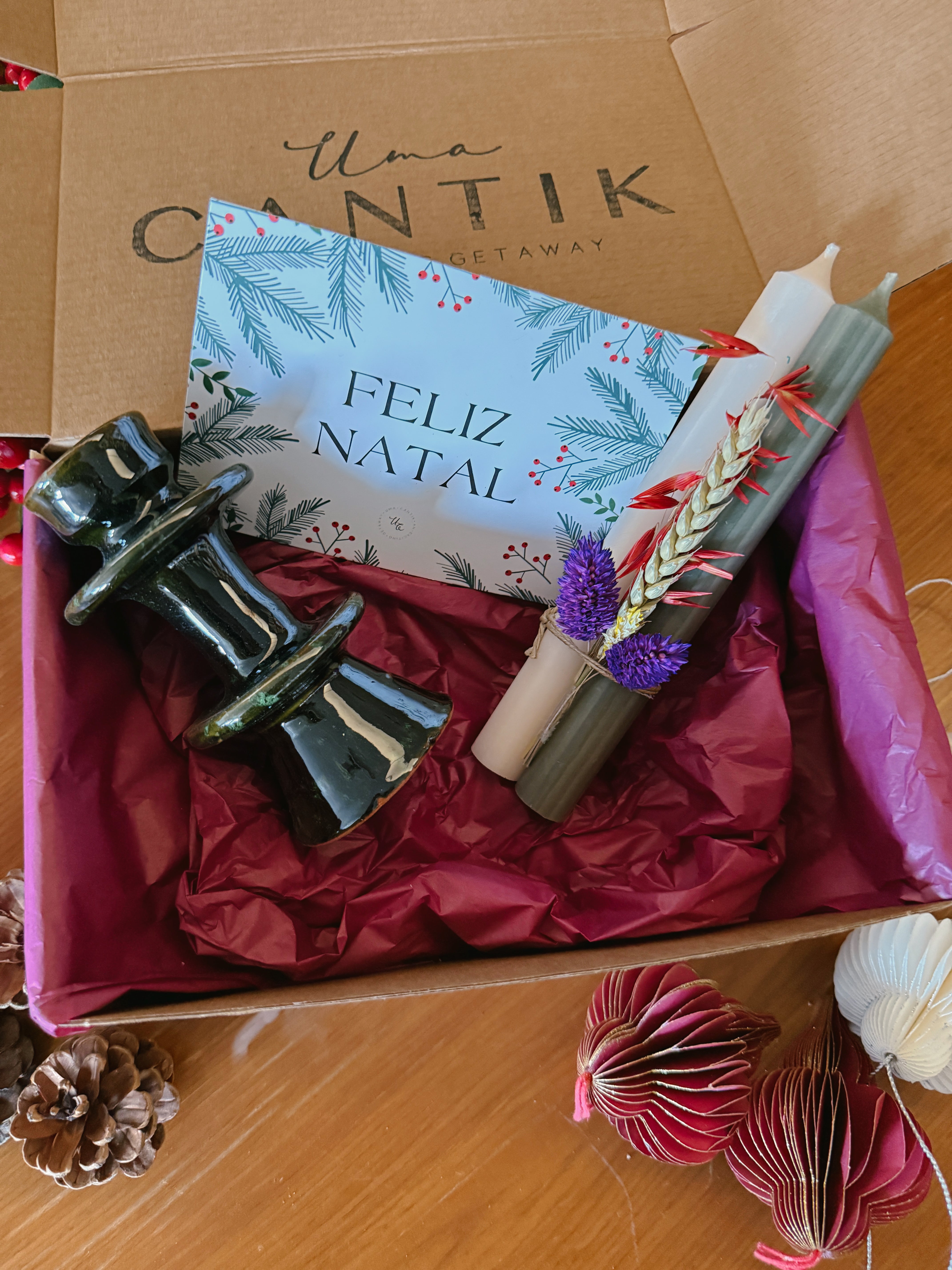 - Speciale verpakking: een elegante doos, versierd met kerstdetails, klaar om te geven en een kaart met feestelijke wensen.