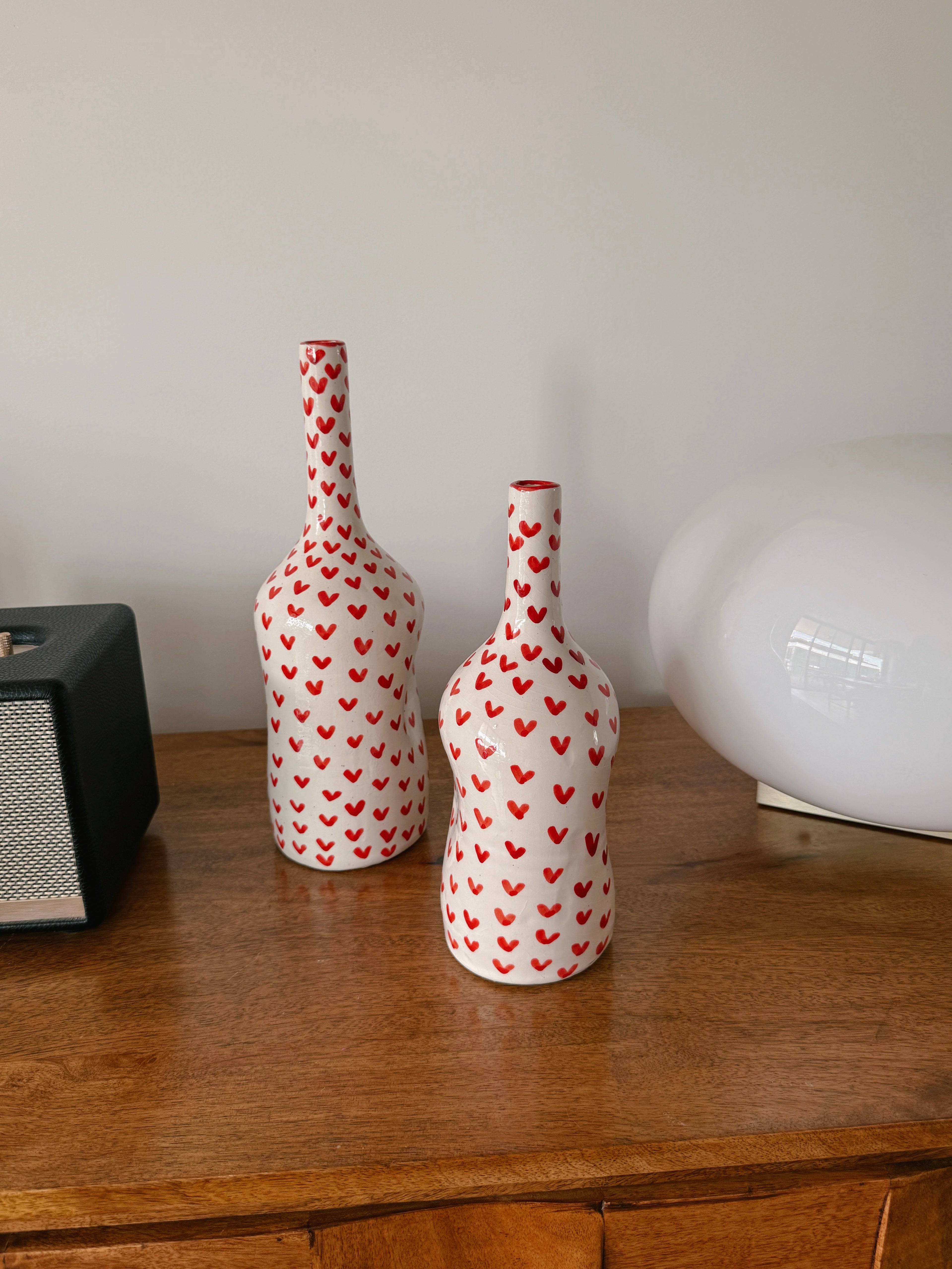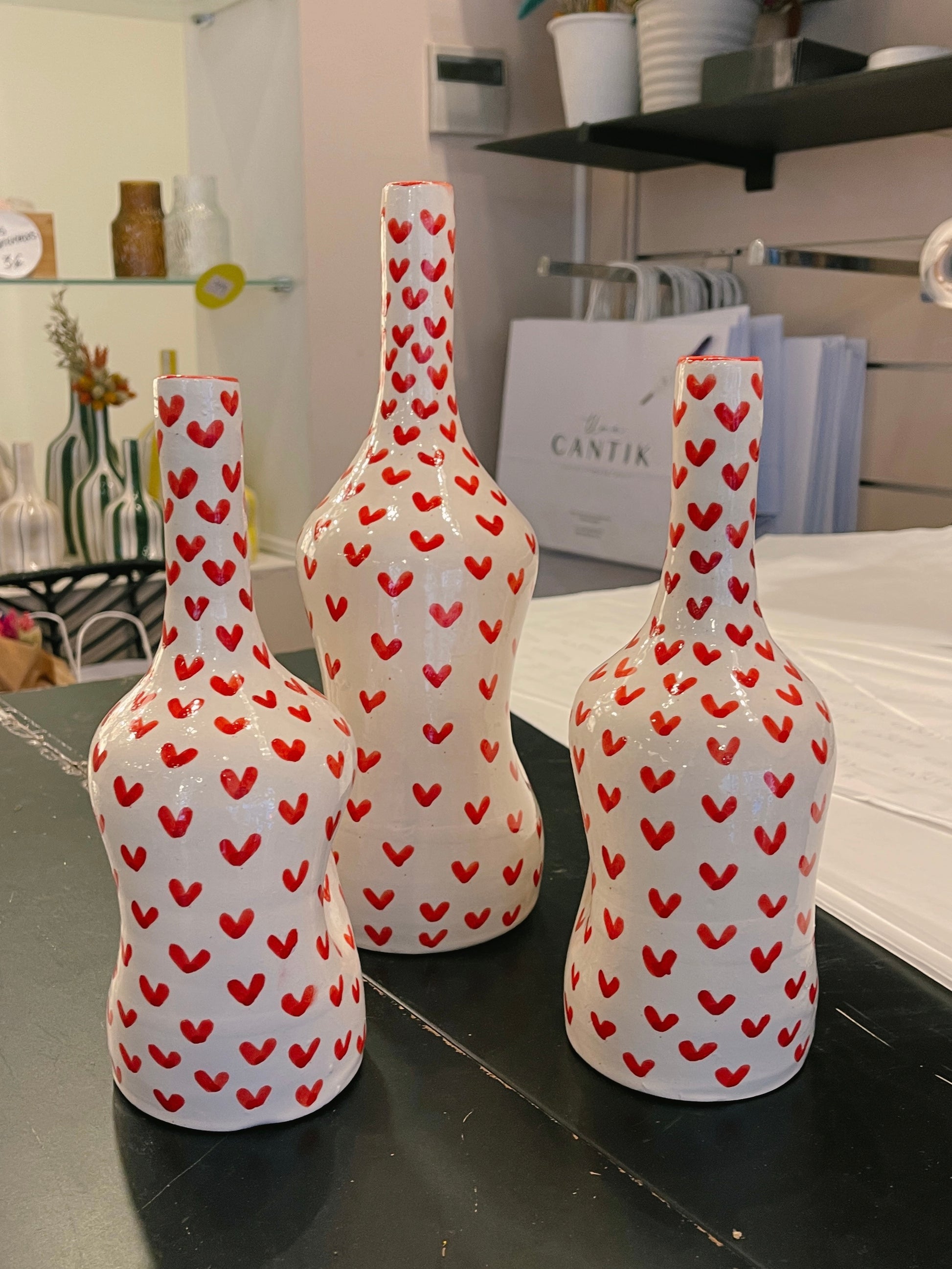 Voeg elegantie en persoonlijkheid toe aan uw ruimte met onze handgemaakte keramische decoratieve vaas beschilderd met harten. Elk stuk is zorgvuldig vervaardigd door getalenteerde ambachtslieden, waarbij traditionele technieken worden gecombineerd met een modern en verfijnd ontwerp.