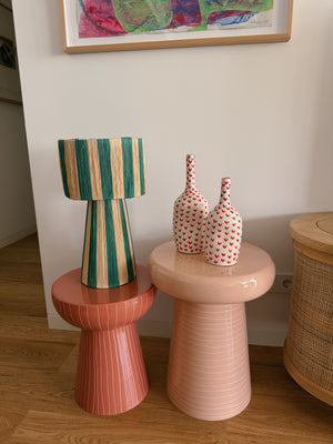 Beschikbaar in drie verschillende maten (klein, medium en groot), is deze vaas voor levensliefhebbers. Of het nu als middelpunt op je tafel is, een vleugje kleur op een plank, of om een paar kleine bloemen te tonen (de opening van de vaas is erg klein).