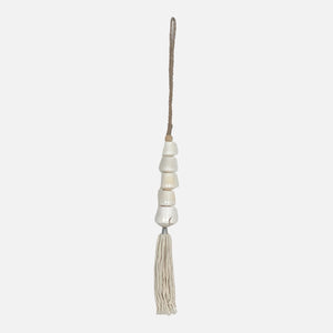 Kent u onze betoverende decoratieve accessoire Caicoli, bestaande uit witte schelpen en de franjes van katoen al? Het is een stuk, van lange koord, die een boho chic charme toevoegt aan elke ruimte in uw huis.