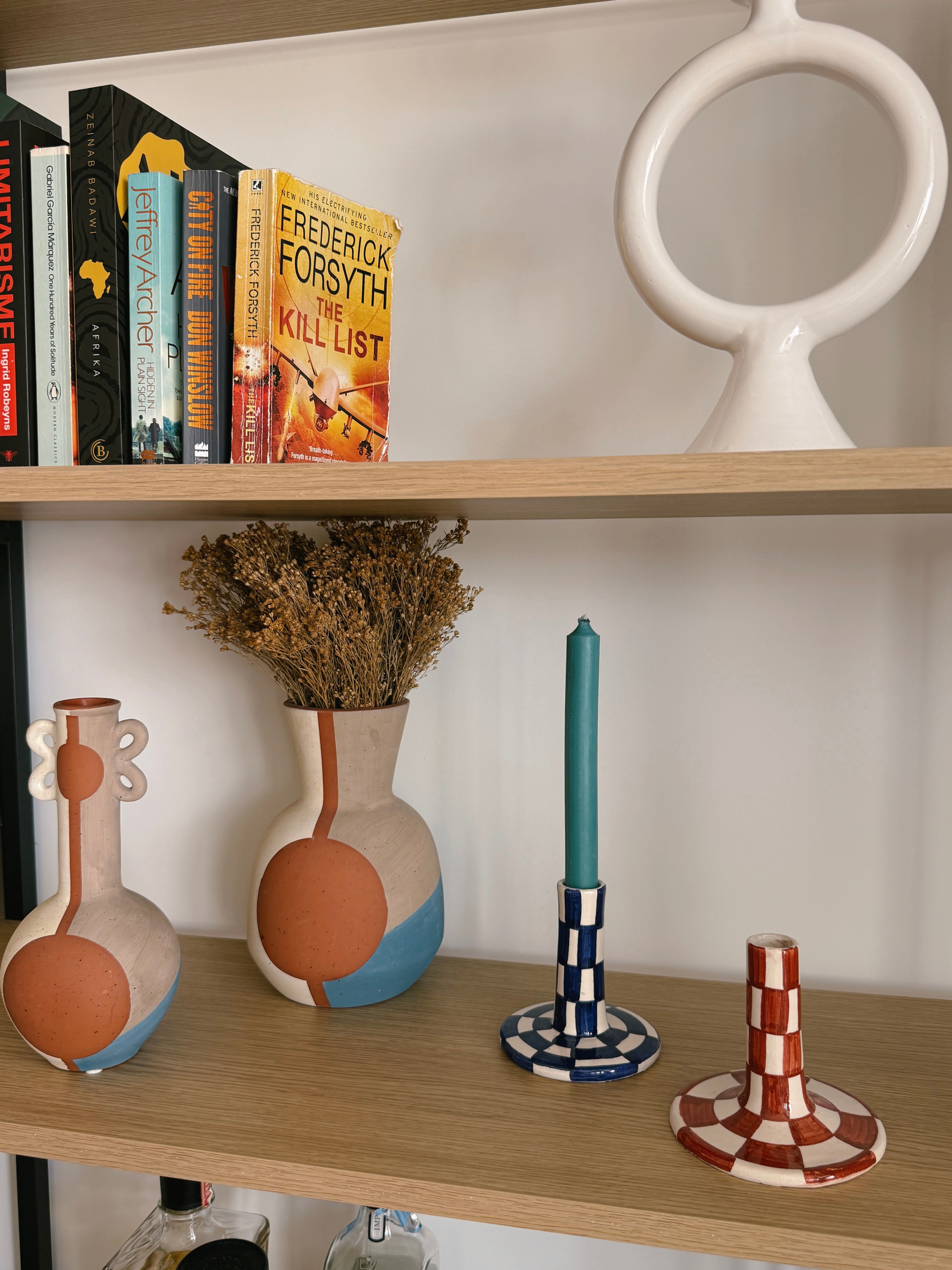 Transformeer uw omgeving met de authenticiteit en schoonheid van deze keramische kandelaar, een uniek stuk dat waarde en persoonlijkheid aan uw huis toevoegt. Allemaal met de hand gemaakt, allemaal uniek.