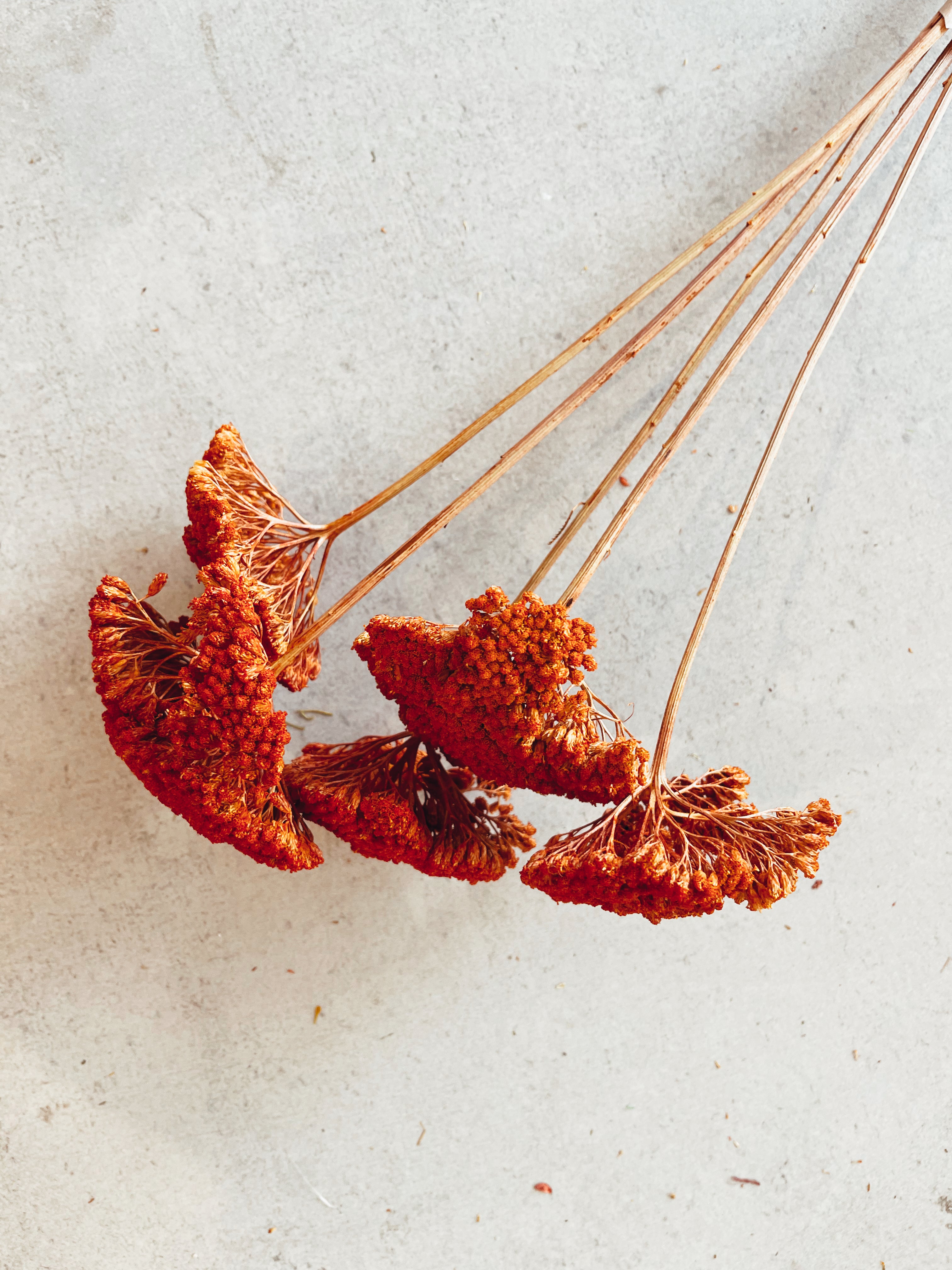 Droogboeket van natuurlijke, geconserveerde Achillea Parker in roodachtige tinten, perfect om een vleugje natuur aan elke ruimte toe te voegen. Een van de favorieten.