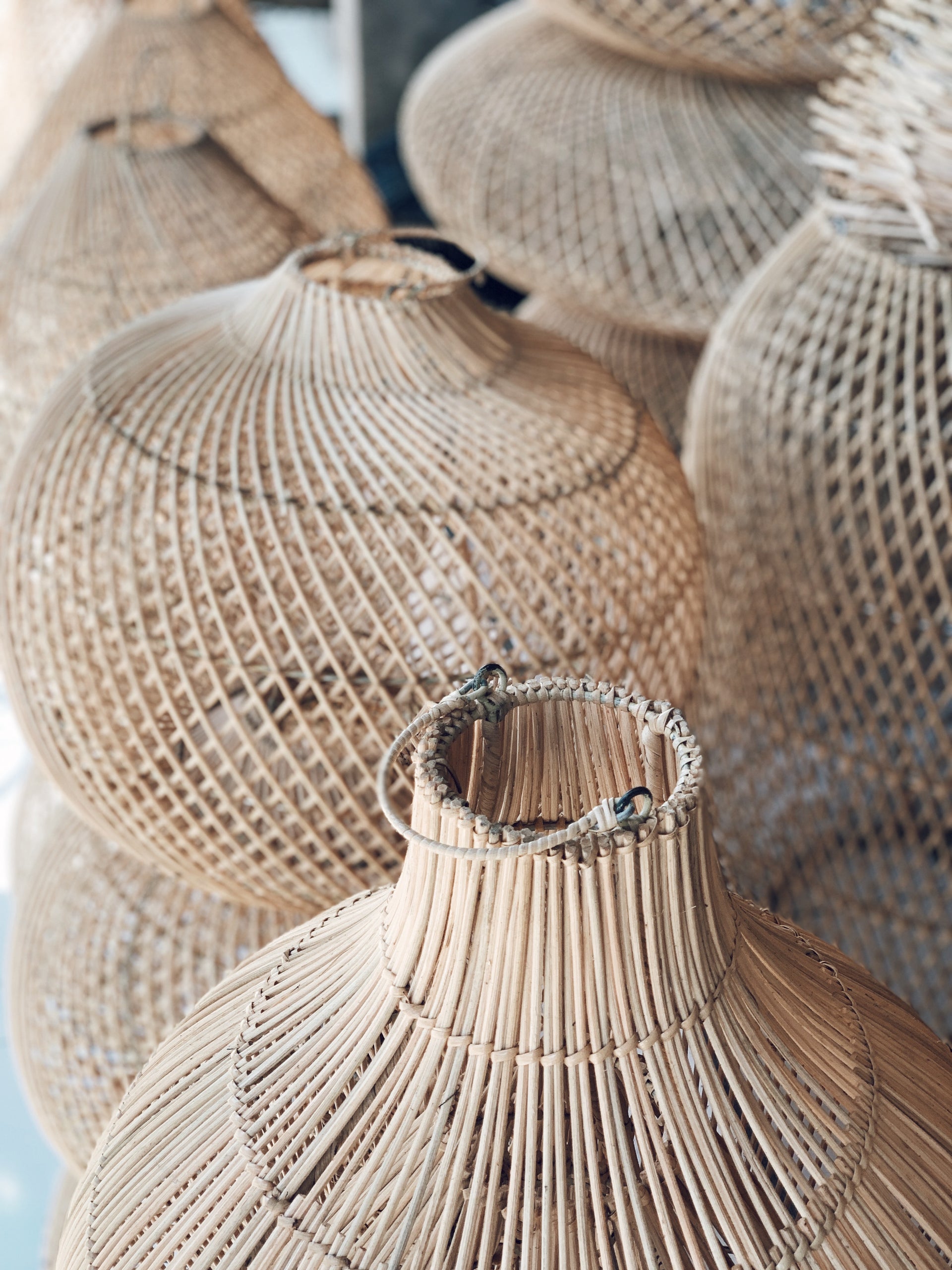 De uma forma muito simples: a maioria dos produtos da nossa coleção são feitos com materiais naturais, como por exemplo, o rattan, o bambu, a madeira teca ou ervas marinhas.