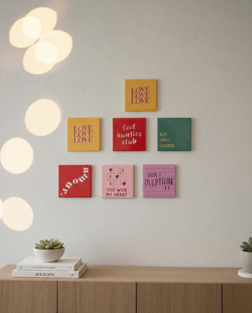 Azulejos decorativos em cerâmica, ideais para trazer boas vibrações e um toque de personalidade à decoração da sua casa. Perfeitos para paredes, prateleiras, cozinhas ou casas de banho, combinam design moderno e criativo com a inspiração dos azulejos portugueses.
