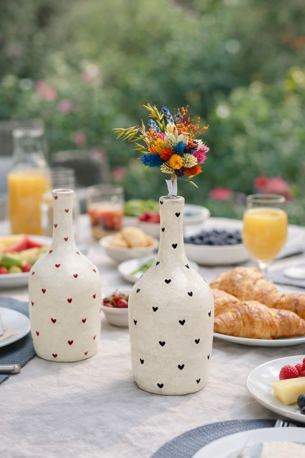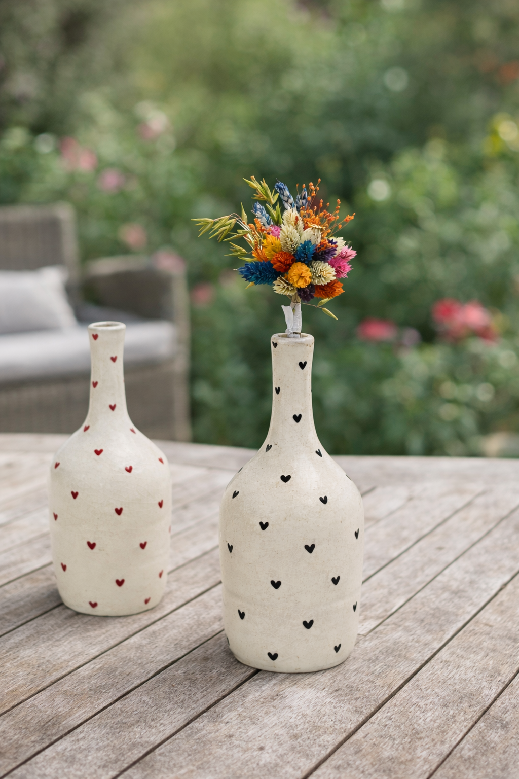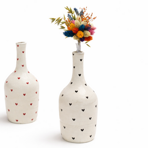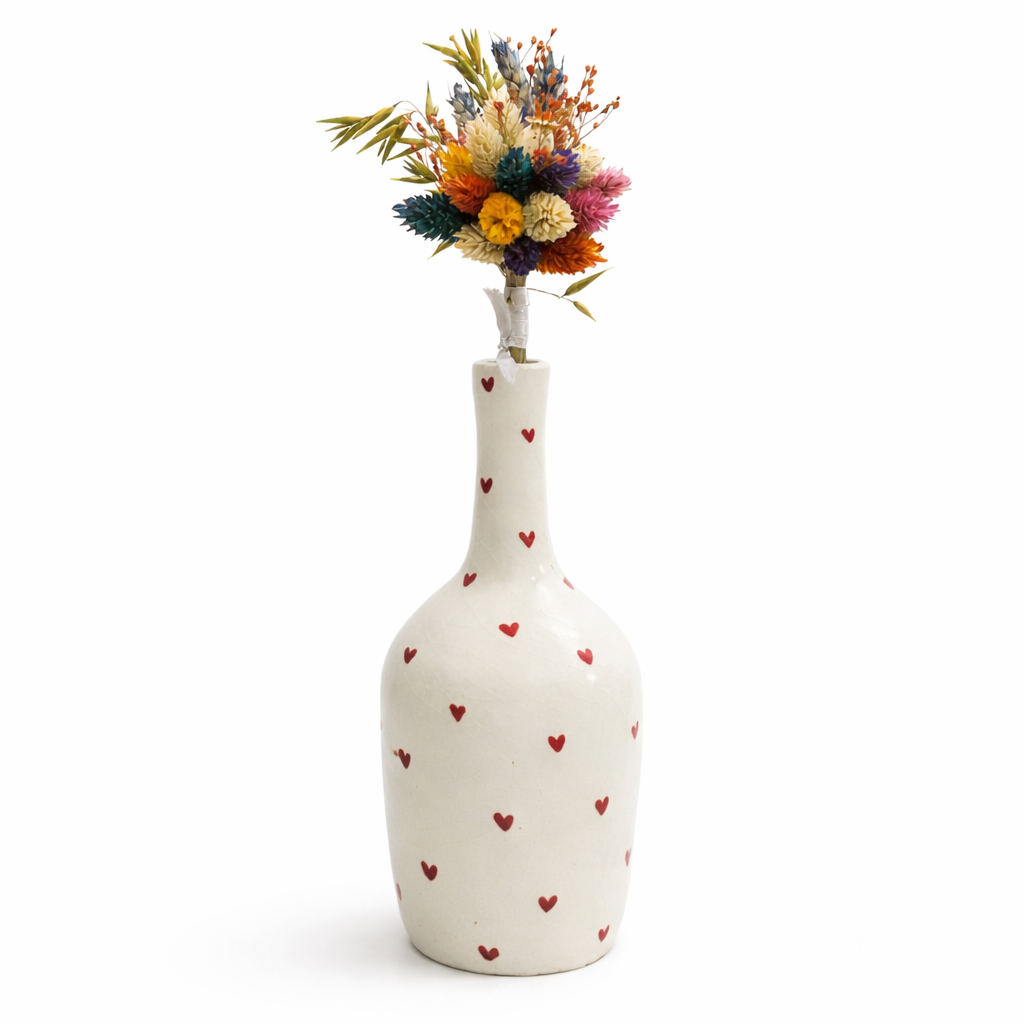 Adicione elegância e personalidade ao seu espaço com a nossa jarra decorativa de cerâmica feita à mão com corações. Cada peça é cuidadosamente confeccionada por artesãos talentosos, unindo técnicas tradicionais a um design moderno e sofisticado.