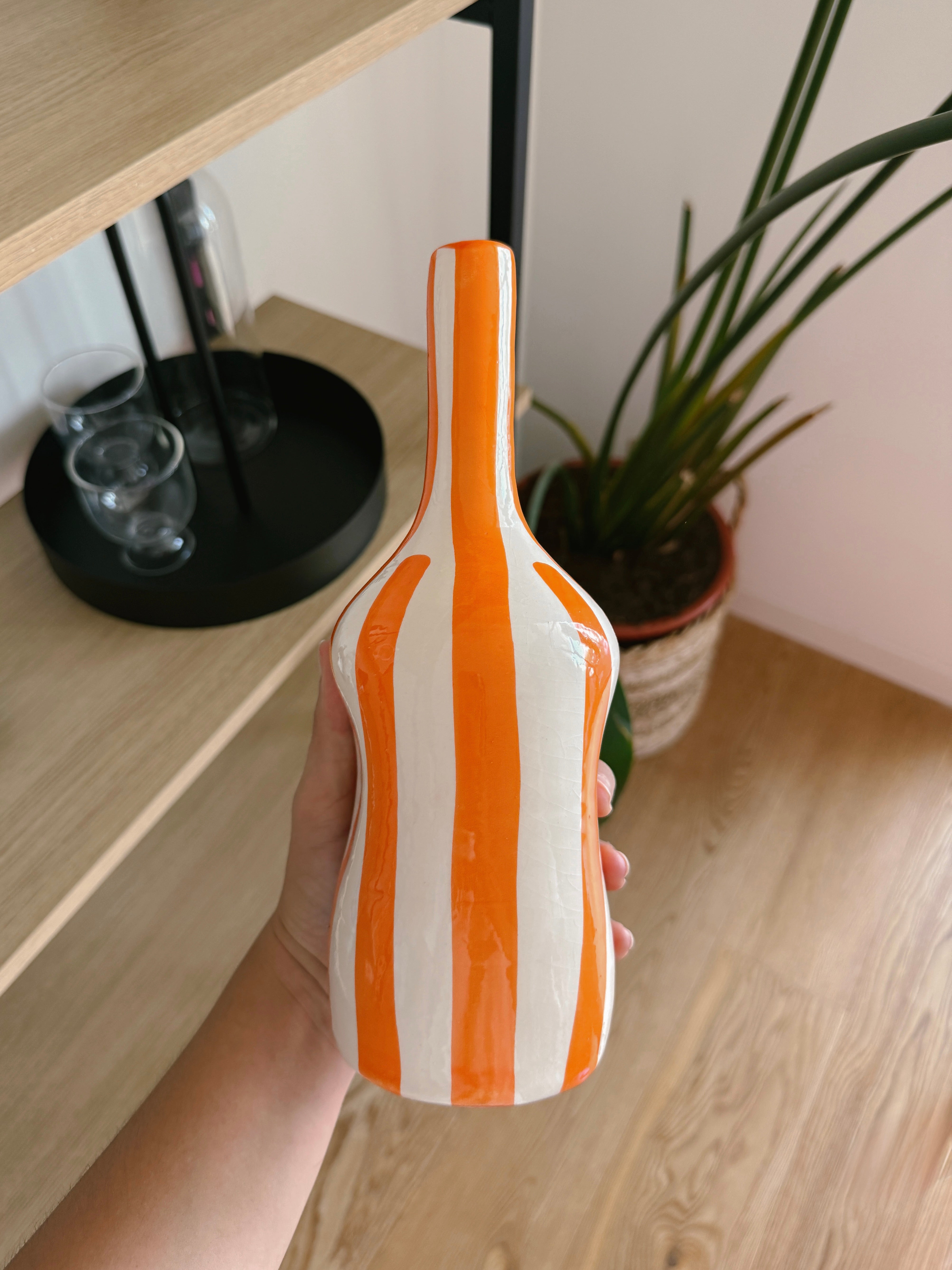 Adicione elegância e personalidade ao seu espaço com a nossa jarra decorativa de cerâmica feita à mão com riscas. Cada peça é cuidadosamente confeccionada por artesãos talentosos, unindo técnicas tradicionais a um design moderno e sofisticado.
