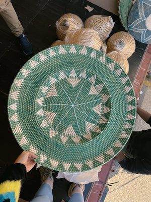 Os pratos de parede Lombok têm um padrão floral característico, que é acentuado pelos tons de verde menta deste modelo. Feito em fibra natural de rattan, são leves, versáteis, e dão destaque à qualquer espaço, seja na sala de estar, no corredor ou no quarto. Disponíveis em diversos tamanhos.